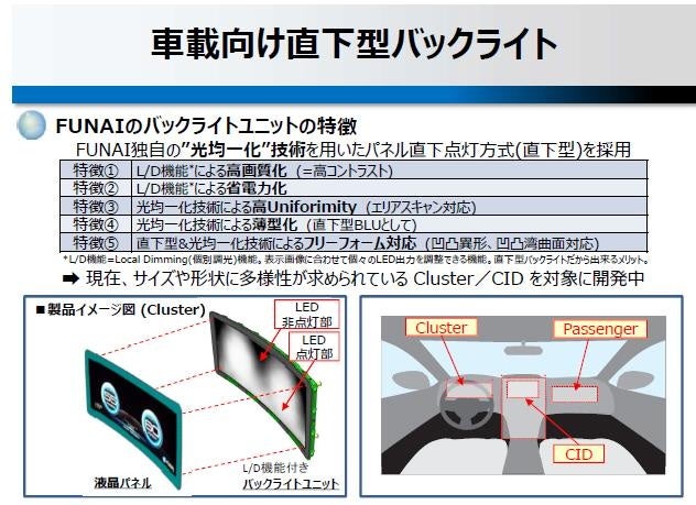 ※1本規格は車載機器製造企業に求められる厳しい品質要件、顧客要求、顧客満足、継続的な改善を確実に実行し、高品質・高信頼で競争力のある製品のタイムリーな開発、製造、供給を行うためのマネジメントシステムです。ローカルディミング等、当社独自技術を用いた車載バックライトの高画質化/省電力化、フリーフォーム対応及び、ドライバーの安全性、車室空間の快適性向上に繋がる差別化商品を展開していきます。