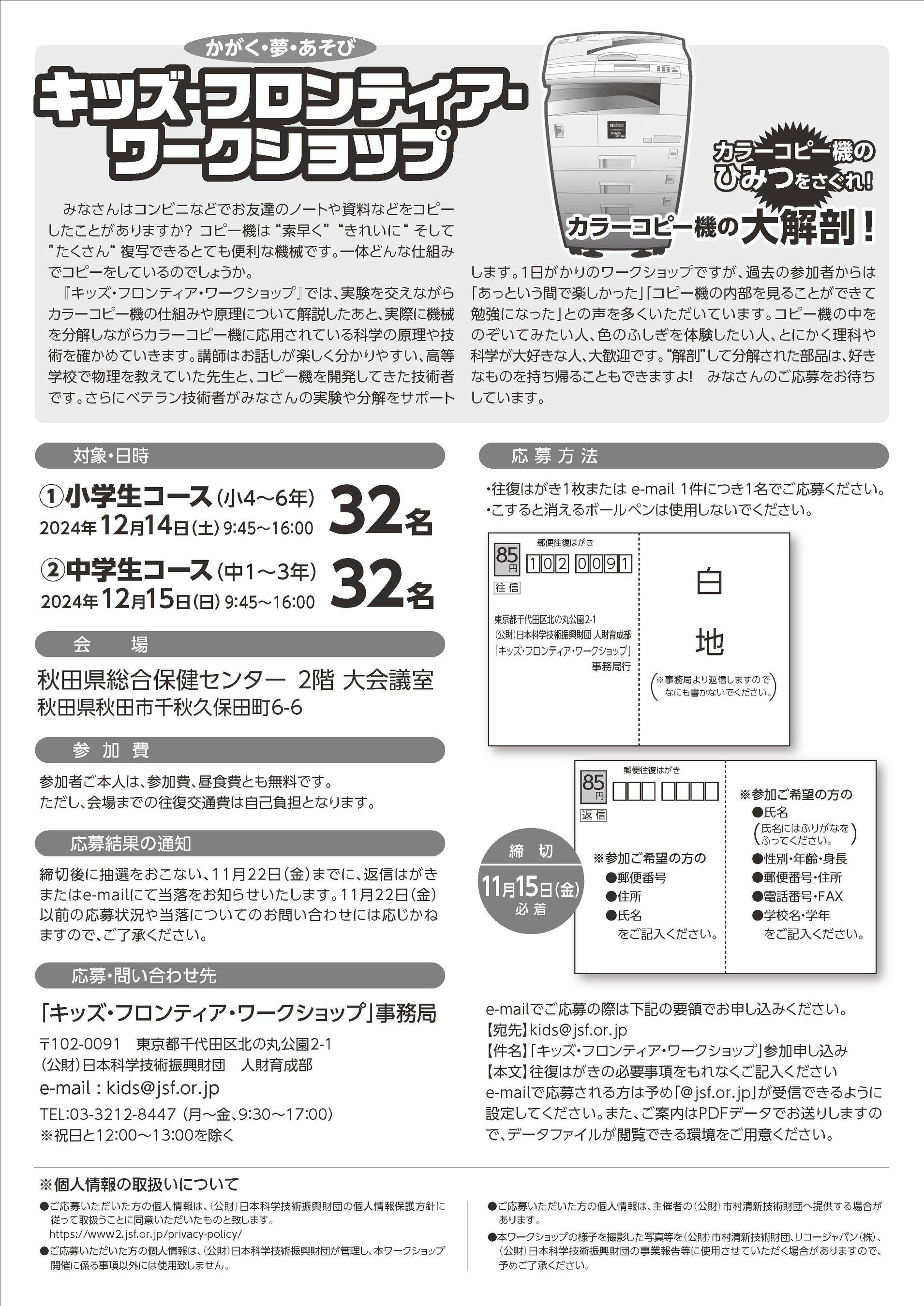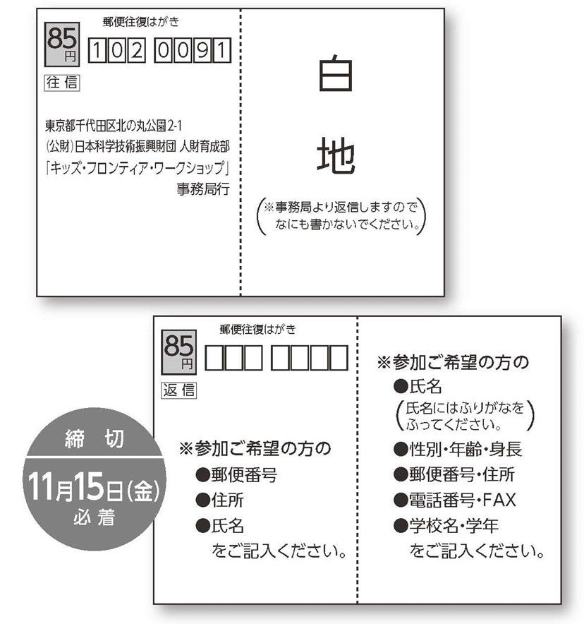 【件名】「キッズ・フロンティア・ワークショップ」参加申し込み