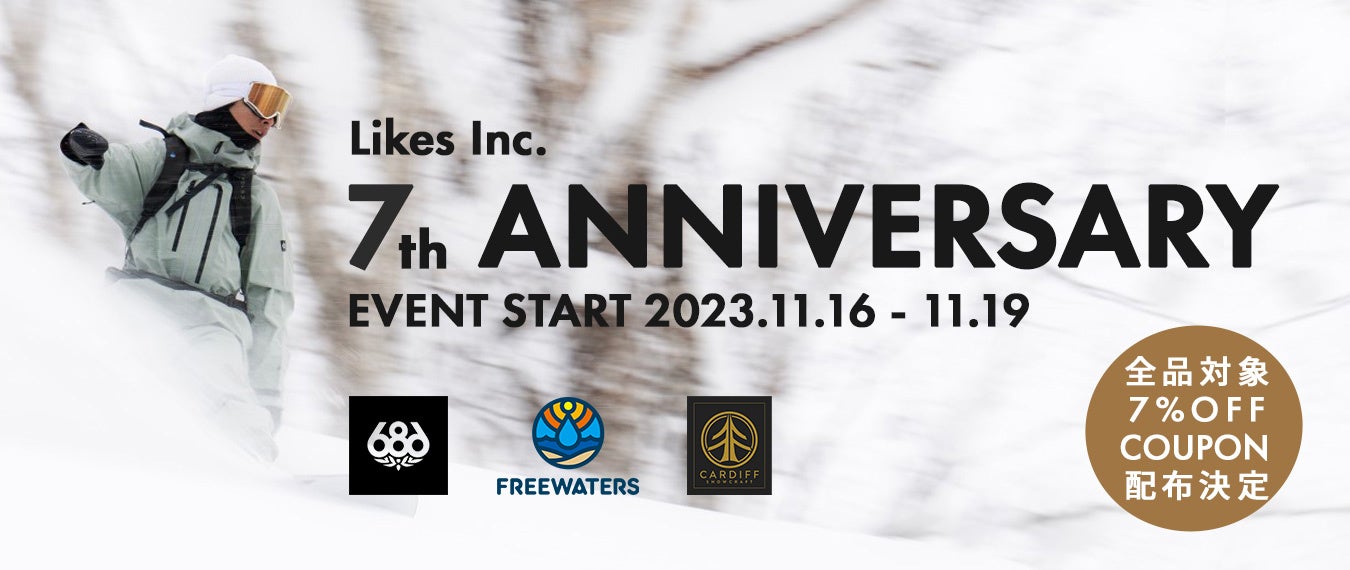 LA発スノーボードウェアトップブランド『686(シックスエイトシックス) 』を取り扱うLIKES ONLINE STOREで、全品7%OFFとなるスペシャルオファーをお届け!