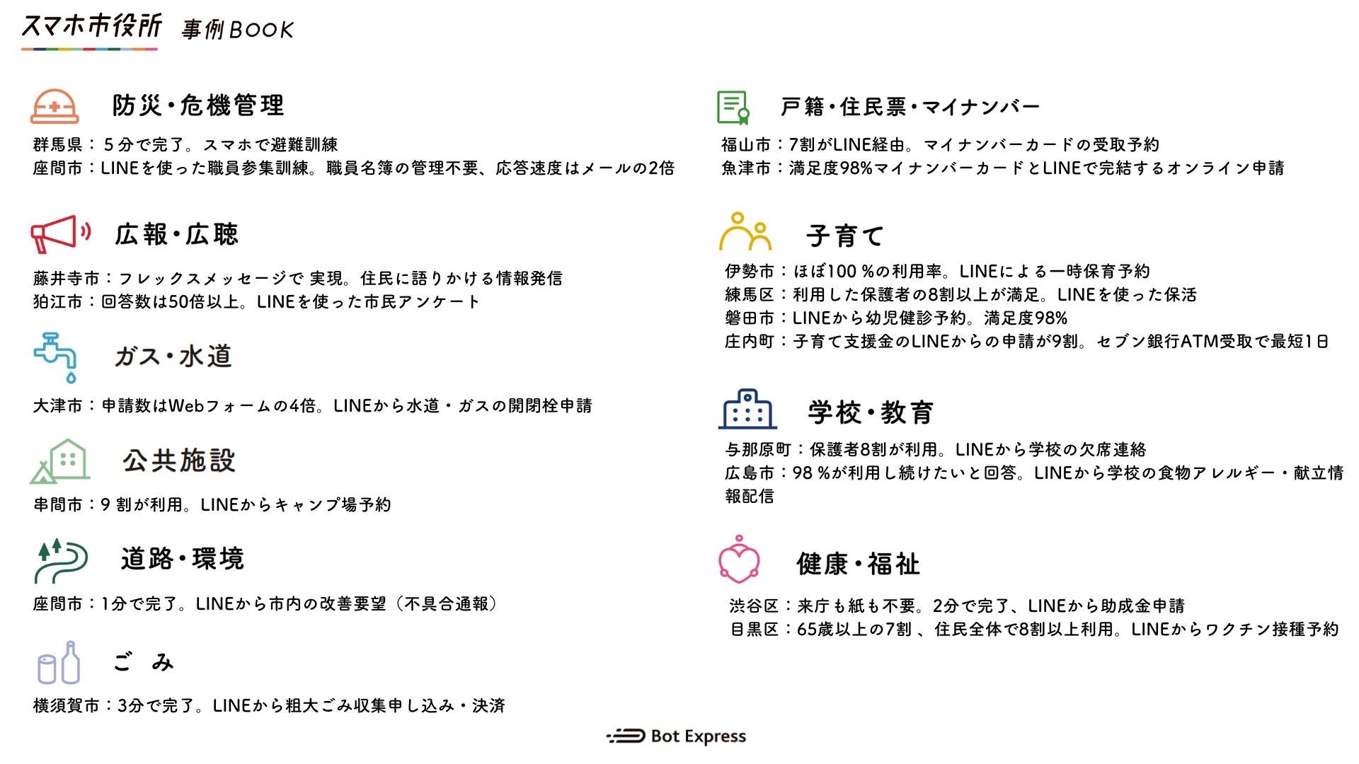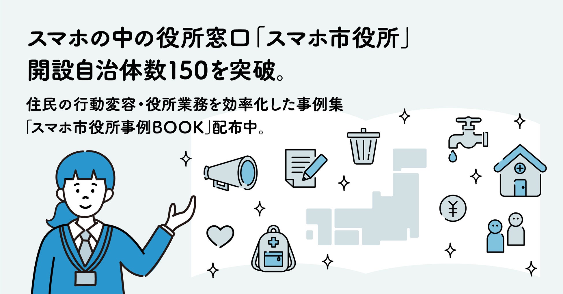 住民の行動変容・役所業務を効率化した事例集「スマホ市役所 事例BOOK」配布中。