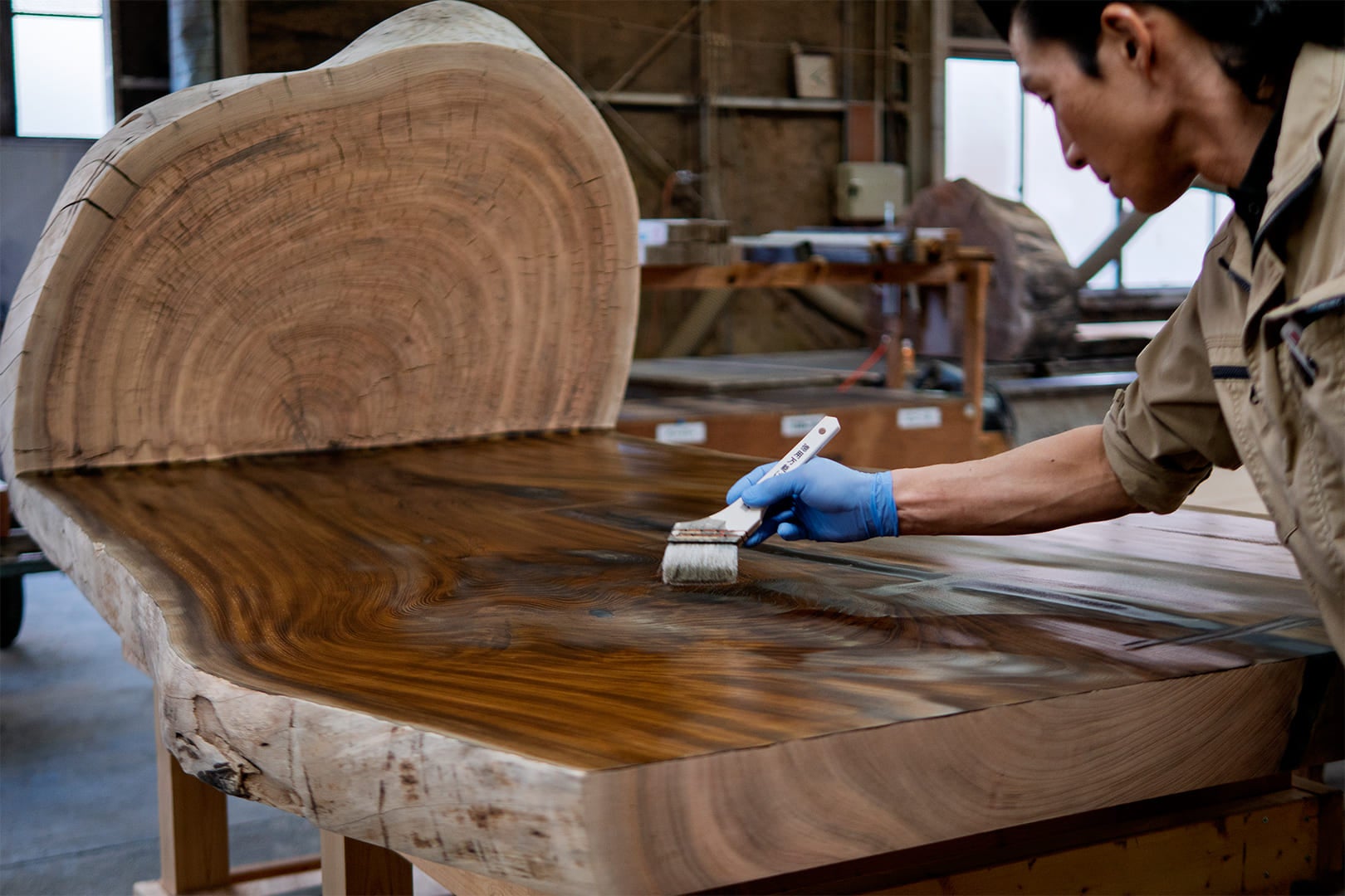 岡崎製材 木工職人による加工・仕上げ 浅井啓介氏による本漆・金継ぎ |