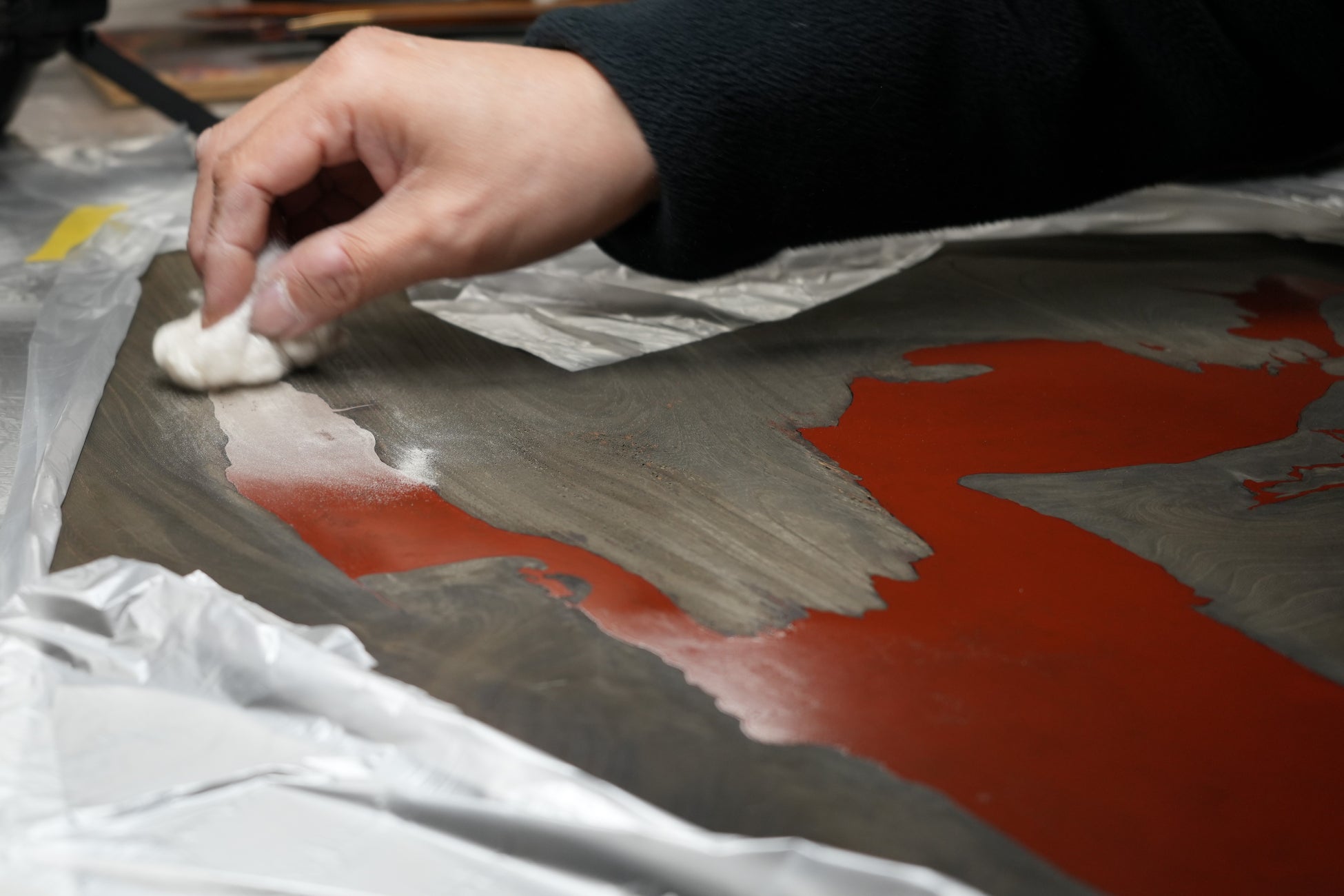多孔質である木材は、温度や湿度といった外部環境の変化に応じて膨張・収縮を繰り返す“動く素材”であるのに対し、硬化後は動かない漆は性質が大きく異なる。そのため、両者を直接組み合わせると不具合が生じる可能性が高い。