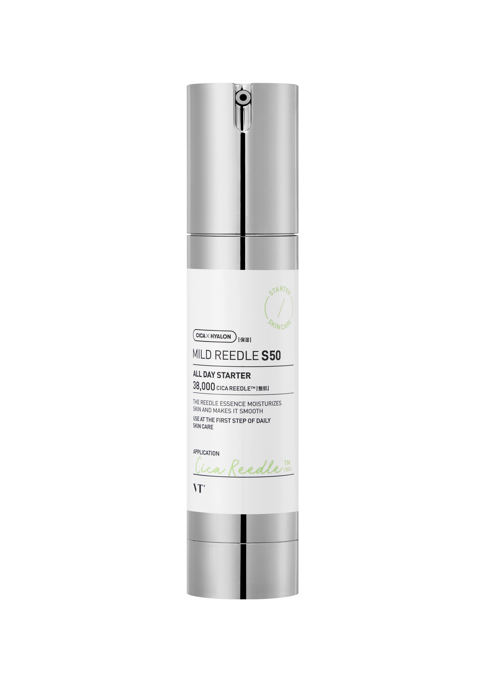 肌をなめらかに整える美容針*¹とCICA*²を掛け合わせ、ゆらぎやすい肌のキメを整えてお家でも美容エステ級のケアができる商品として、今年VTから登場した「REEDLE SHOT LINE(リードルショットライン)」。特に今回新発売する「マイルドリードルS 50」は、美容針*¹が肌にチクっと刺さるような使用感や「針*¹」というワードに抵抗を感じていた方、朝晩手軽にホームエステケアを始めたいという方に向けて、「リードルショット 100(50ml)」よりもさらに美容針*¹の配合量を減らし、針*¹美容初心者でも気軽にお使いいただける商品となっております。