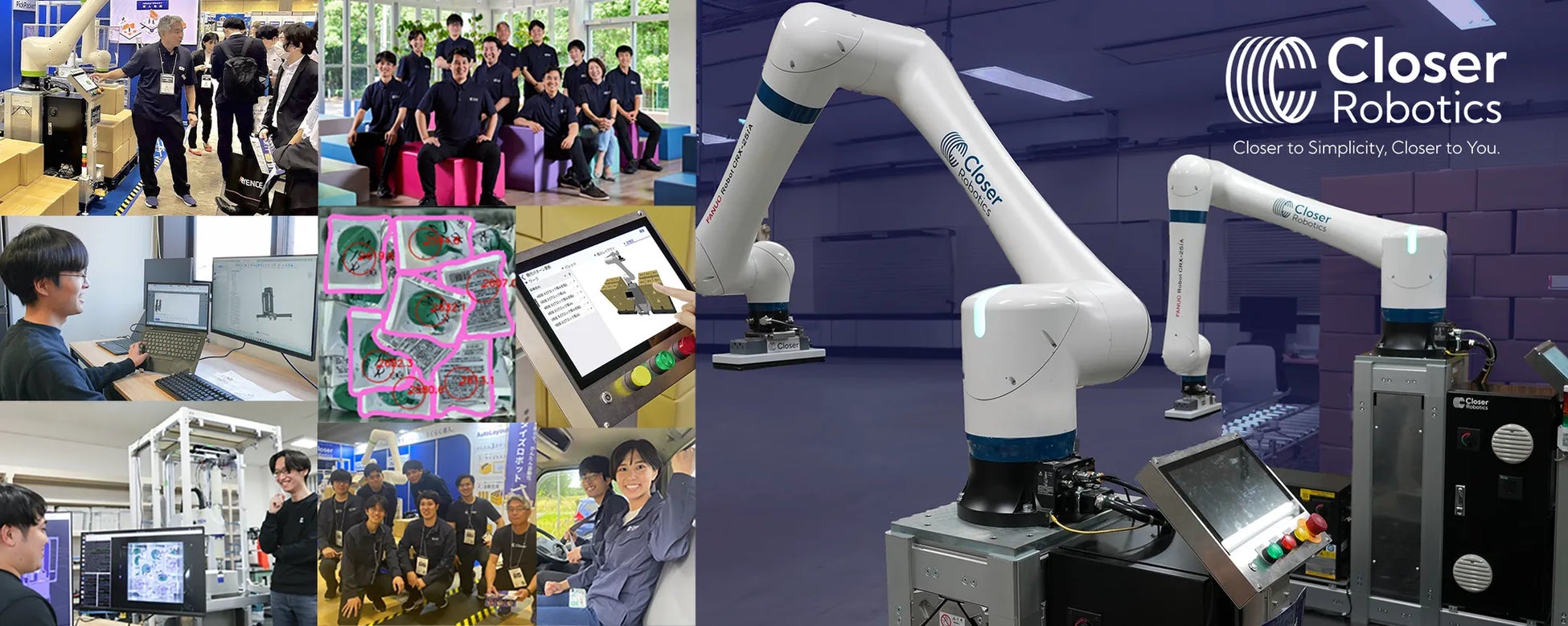 Closer Roboticsは、2021年の創業以来、自動化が進んでいなかった食品工場や中小規模の生産ラインをはじめとする人手不足領域の課題に向き合い、小型協働パレタイズロボット「Palletizy」や小袋移載ロボット「PickPacker」など、独自のソフトウエア技術を活用して、現場に即したAIロボットを開発・提供してきました。