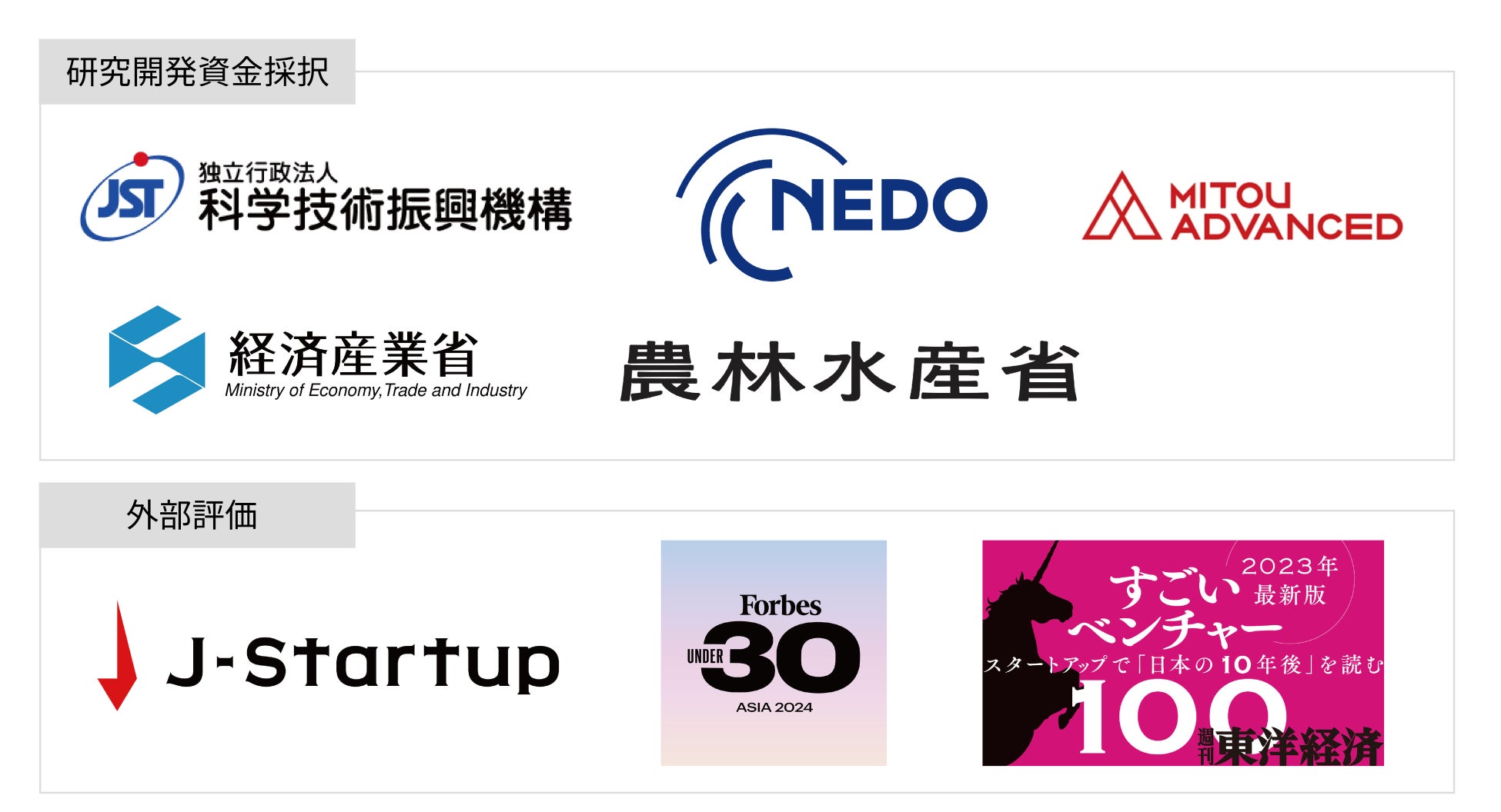 「J-Startup」や『週刊東洋経済』「すごいベンチャー100」への選出、「いばらきイノベーションアワード」など、数々の栄誉ある賞を受賞。また、代表の樋口翔太が「Forbes 30 Under 30 Asia」や「新しいいばらきづくり表彰」に選出されるなど、多くの方々からご支援をいただいております。