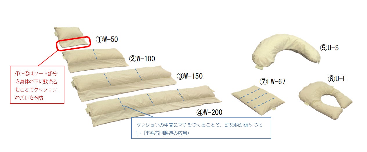 体位保持だけでなく使い心地にもこだわった7種類をご用意