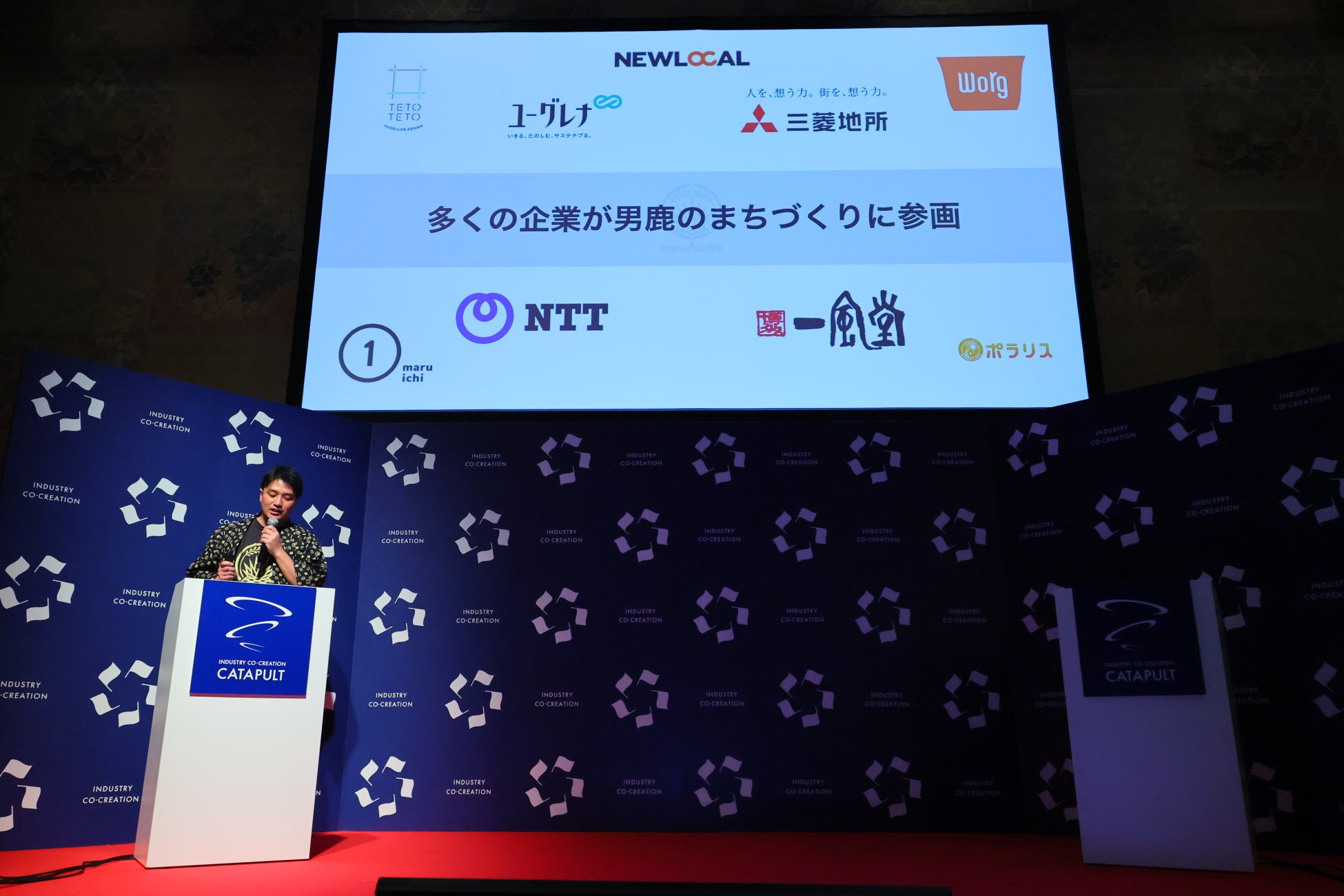稲とアガベは「男鹿の風土を醸す」を経営理念に掲げ、本プレゼンテーションでは、2021年の創業から3年で醸造所や食品加工所、ホテルの開業など男鹿のまちづくりをしてきた実績や、様々な企業と共に活動してきた取り組み、今後の将来構想などについてプレゼンテーションをおこないました。稲とアガベのこれまでの実績とこれからの未来の取り組みが評価され、審査員による投票のもと、優勝いたしました。