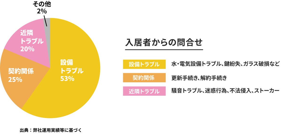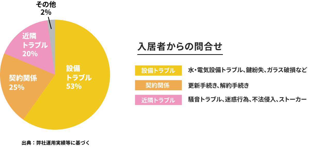 弊社運用実績に基づく、主な入居者問い合わせ内容は以下の3つです。