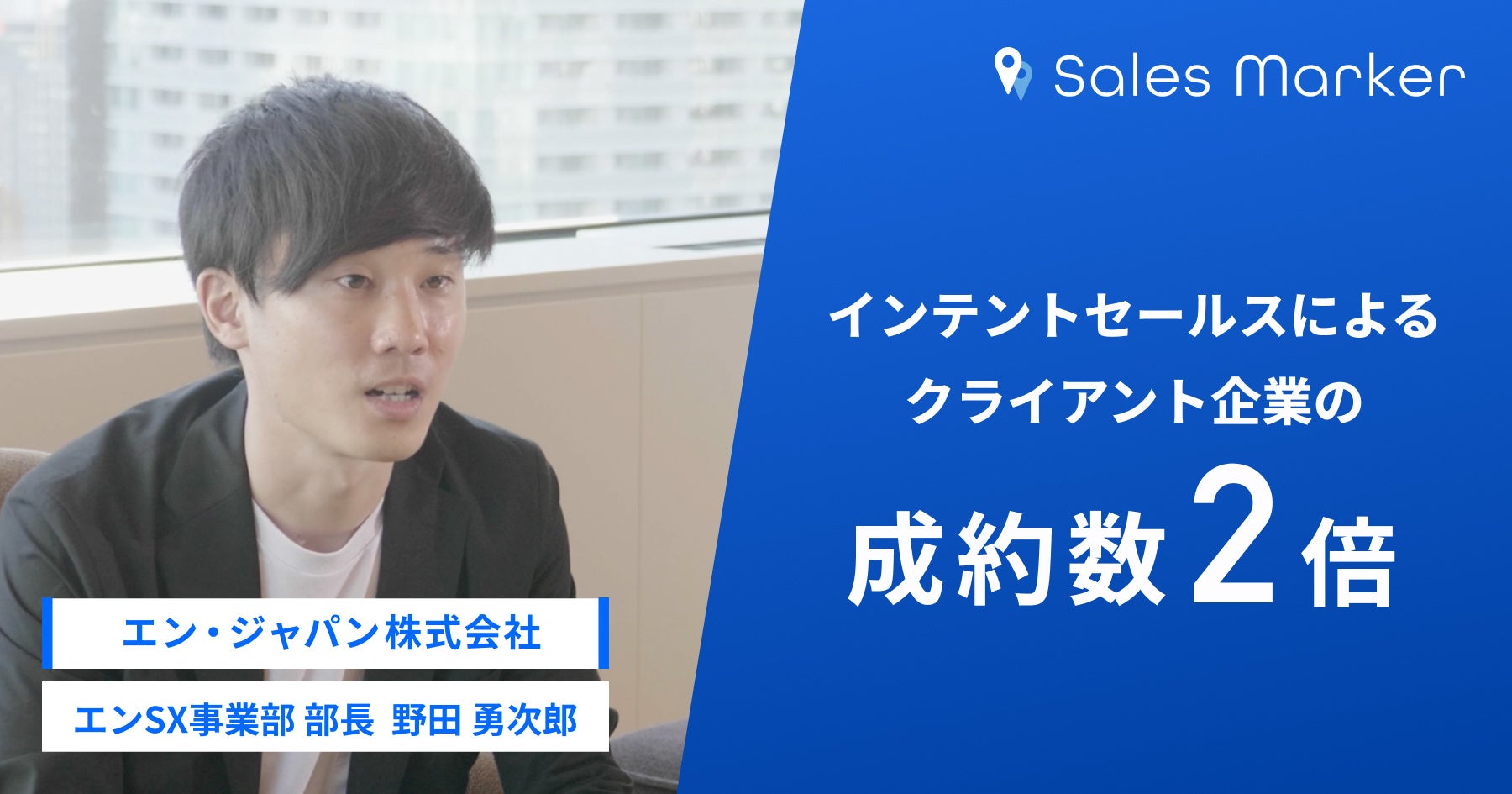 今回放映する、新時代の営業手法「インテントセールス」〜エン・ジャパン編〜では、エンSX事業部(エン・ジャパン株式会社におけるクライアント企業の営業変革を支援する事業部)の部長である 野田様に出演いただいております。エン・ジャパン株式会社では、自社内はもちろんのこと、クライアント企業でのインテントセールス実践も推進されており、クライアント企業で実現した「成約数2倍」という成果についてご紹介いただいております。