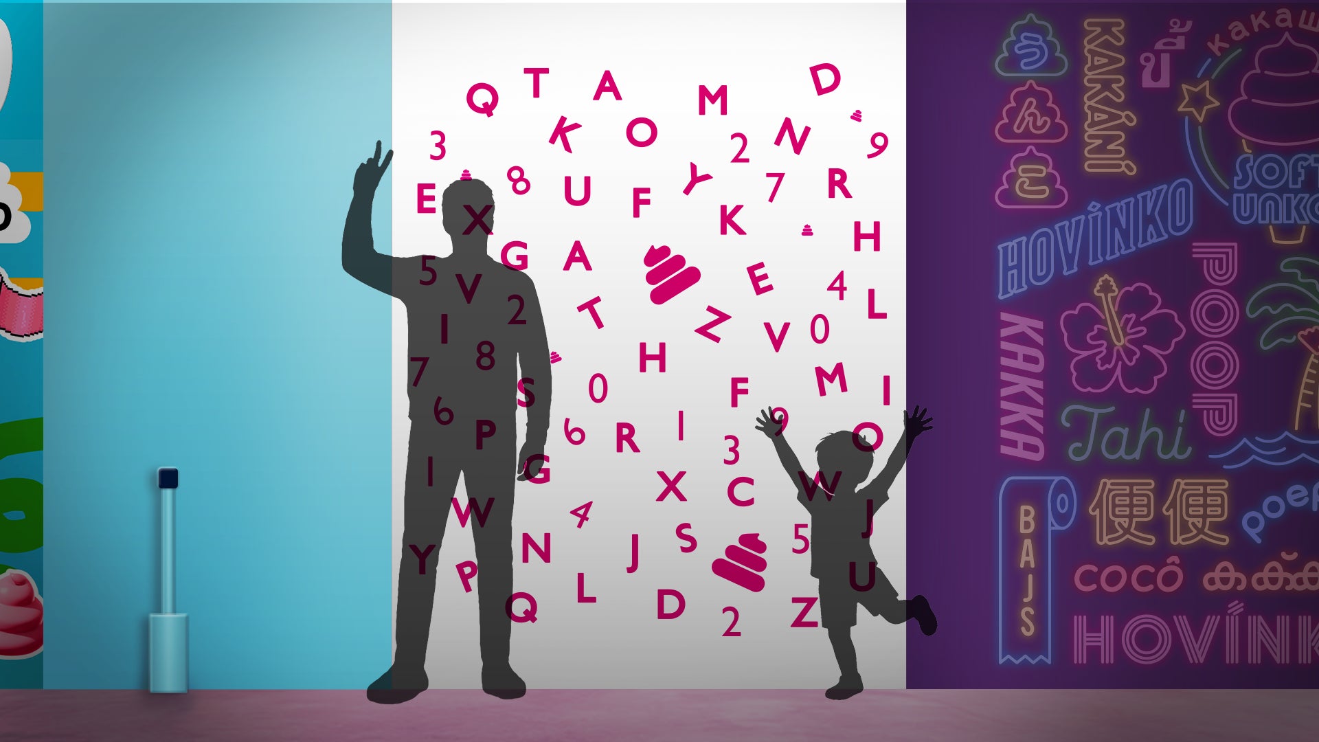 その様子は壁いっぱいに投影され、うんこカワイイ世界が広がっていきます。
