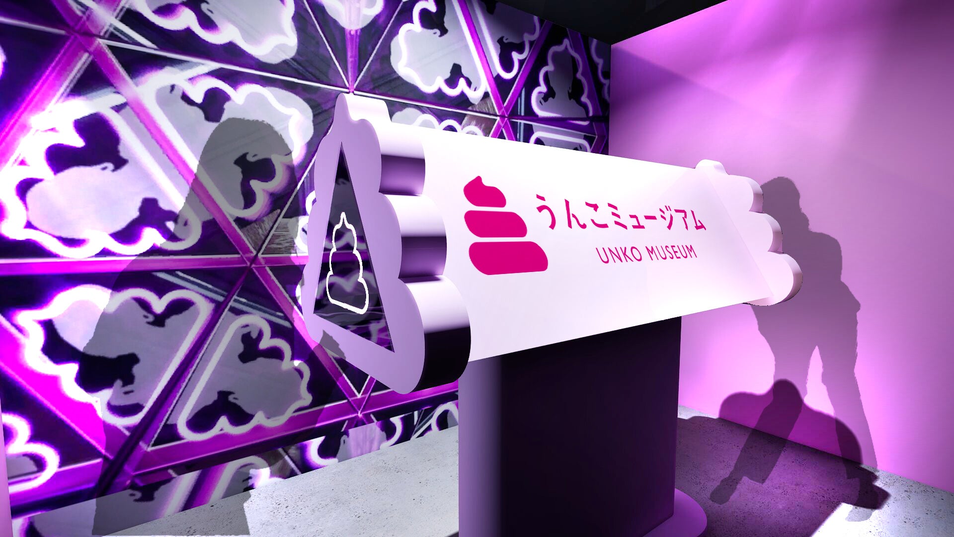合わせ鏡の中に、パステルカラーのうんこが大量に飛び交うフォトスポットです。マイうんこ片手に、うんこカワイイ写真を撮りましょう!