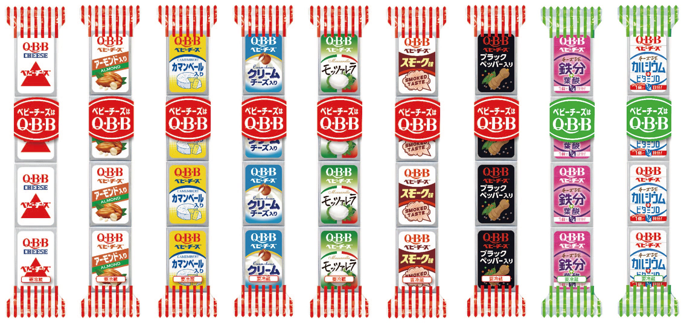 さらにQBBベビーチーズは、プレーンのほか、アーモンド入りやカマンベール入り、栄養素を添加した鉄分入り、カルシウム入り等、豊富なラインナップで選べるおいしさ・楽しさを提供しています。