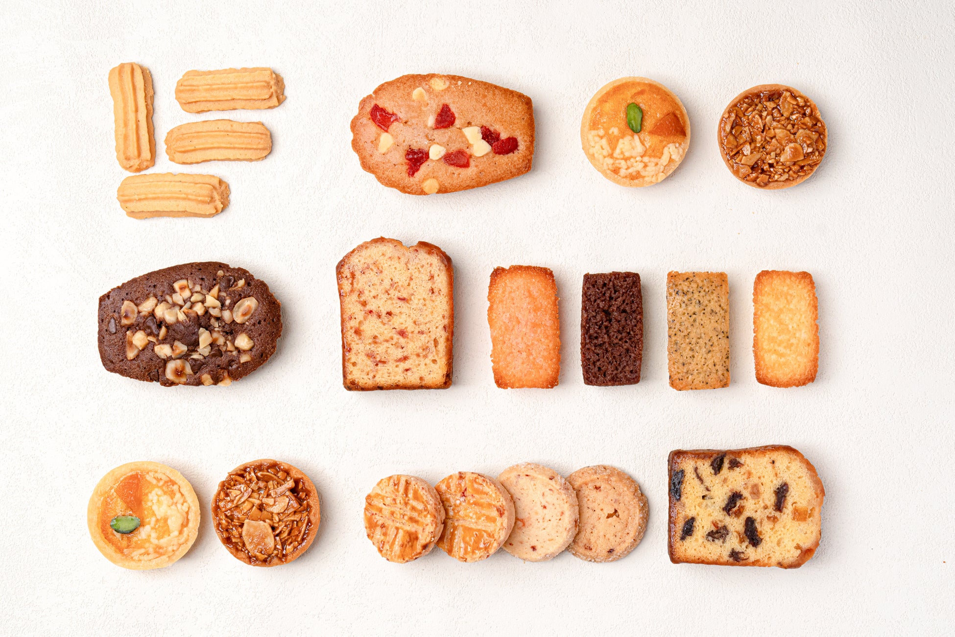 おなじみの「いちご」をベースにしたフィナンシェ・サブレ・ガレット、発酵バターのクッキーと自慢のフルーツタルト2種類、色とりどりの10種類の味わいと素材を楽しみながらお召し上がりください。