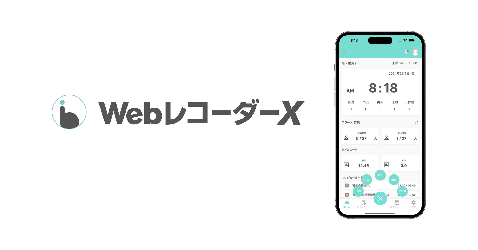 クロノス、スマートフォンから勤怠管理できるアプリ「WebレコーダーX」4月11日配信開始