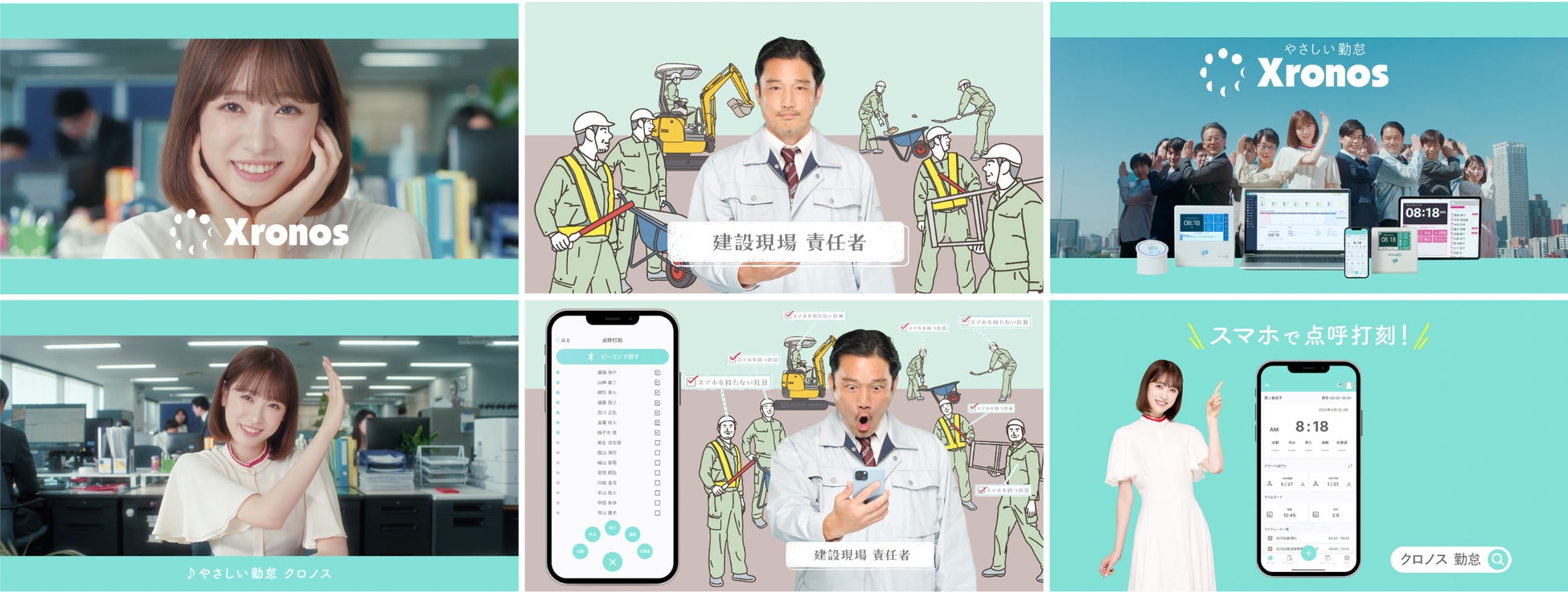髙橋ひかるさんが演じるのはクロノスの化身。とある製造業の会社にて、労務担当者がクロノスの勤怠管理システムを使い、満足そうにしているところ…目の前に髙橋さんが登場!「やさしい勤怠 クロノス♪」と歌いだします。しかし「…っていうけど現場の勤怠管理は難しいんだよな〜」とぼやくのは建設現場の責任者。それに対し「現場の管理責任者が社員の勤怠をまとめて打刻できて、カンタンに管理できる」という点呼打刻の機能を訴求する内容となっています。現場の勤怠をやさしくしていく髙橋さんの歌とダンスにもご注目ください!