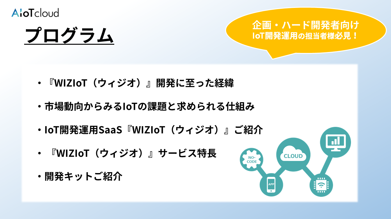 AIoTクラウド副社長が語る「従来のIoT製品開発・運用プロセスからの脱却~WIZIoT(ウィジオ)ではじめる IoT 開発・運用~」