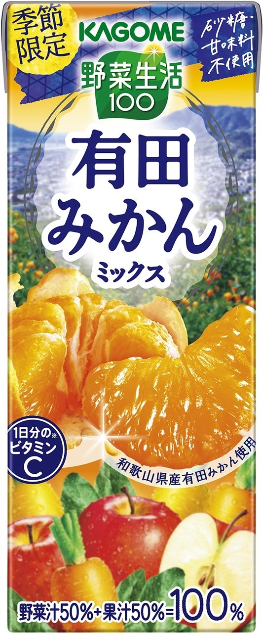 カゴメ株式会社(社長:山口聡、本社:愛知県名古屋市)は、「野菜生活100 有田みかんミックス」を2022年11月22日(火)から2月上旬まで期間限定にて全国で発売いたします。(在庫がなくなり次第、販売終了)