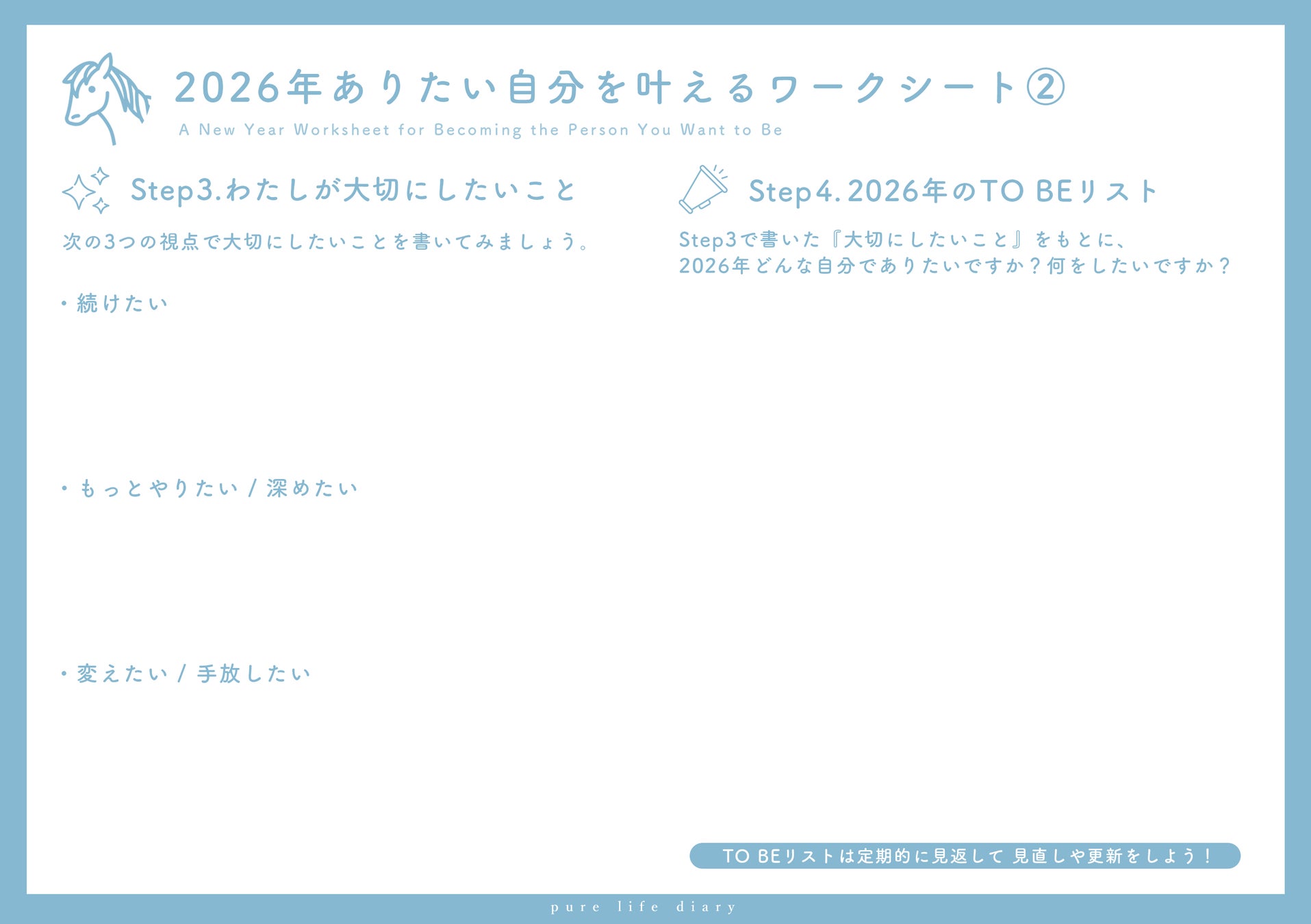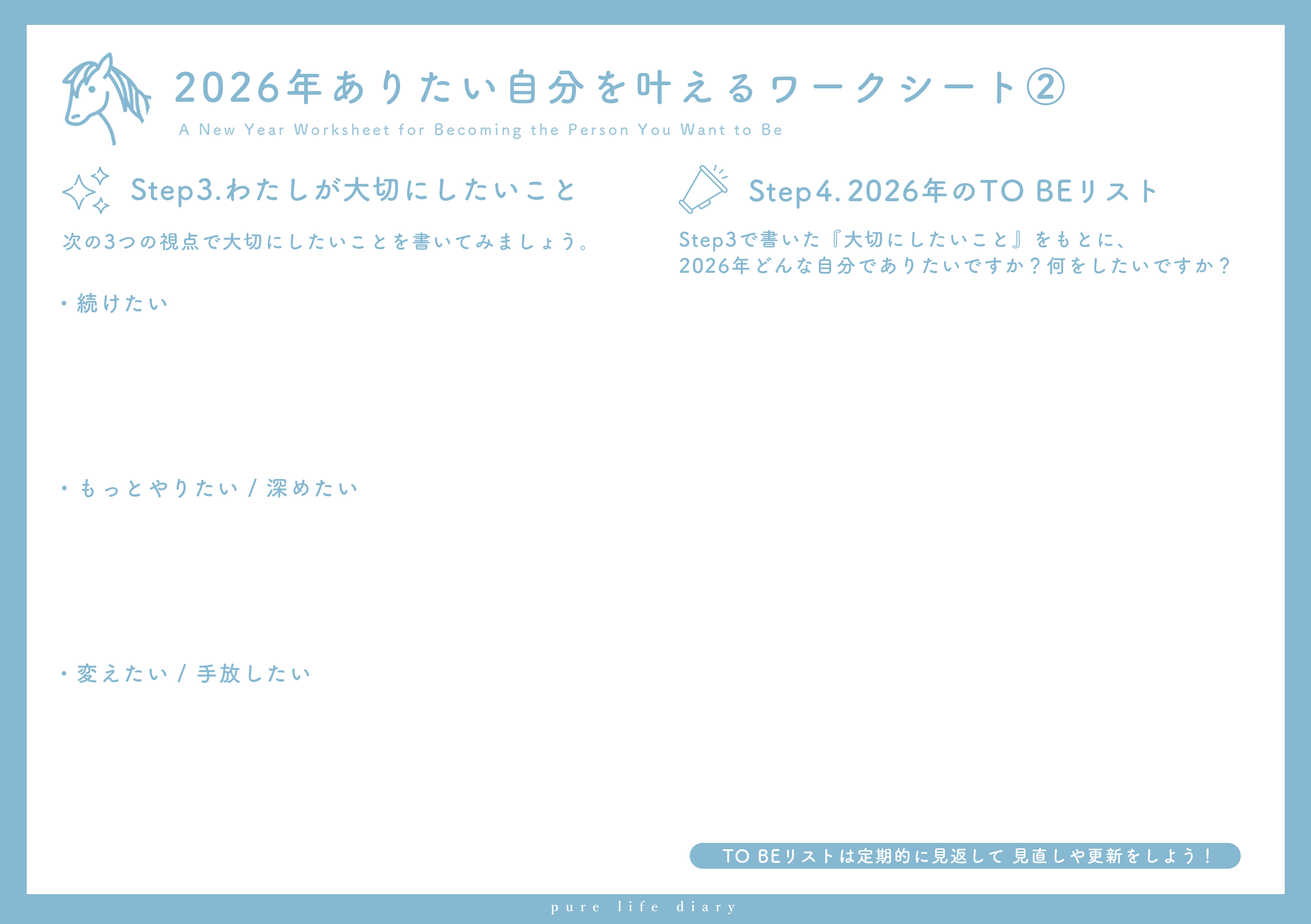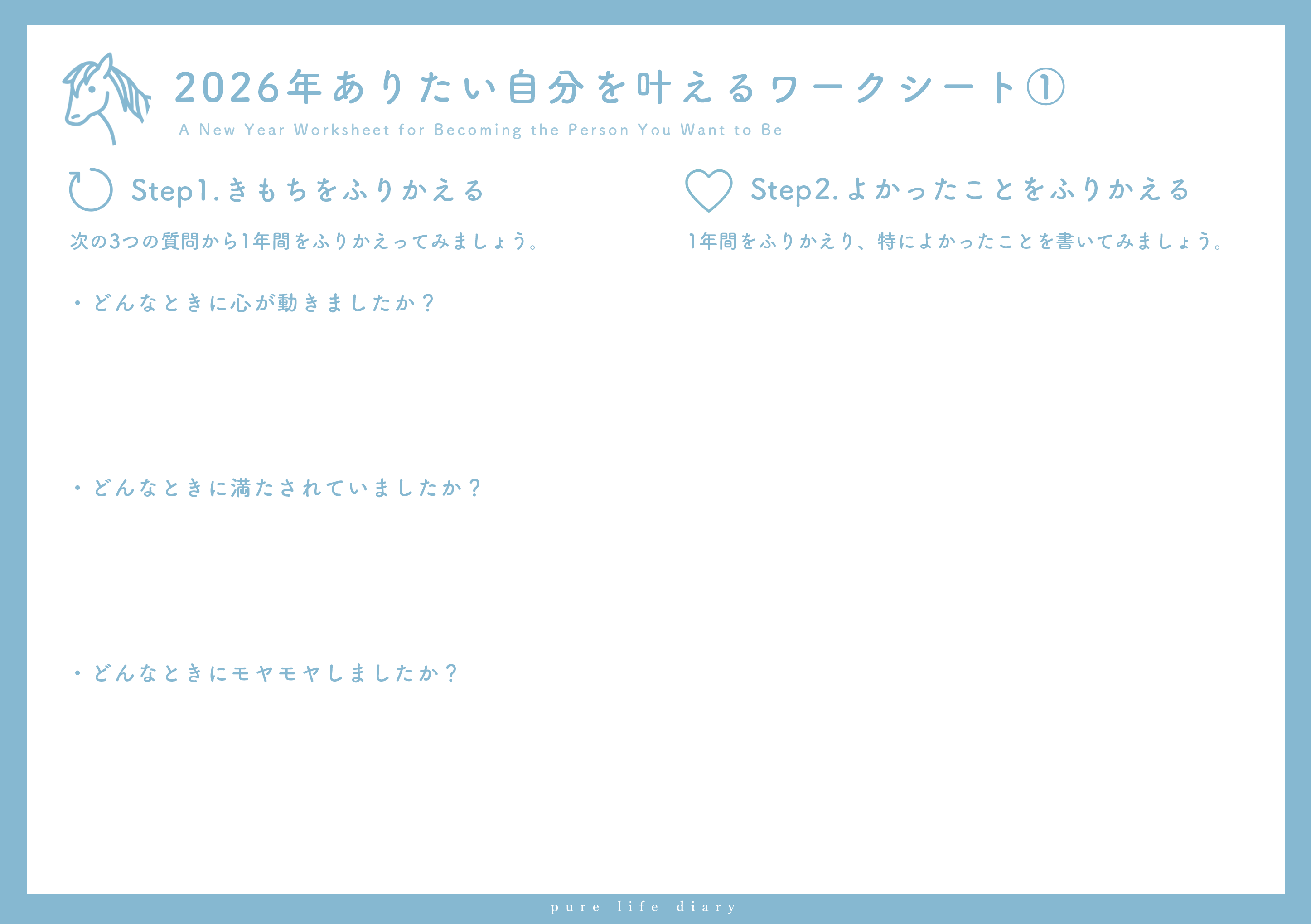 pure life diary流・2026年の目標を考える3ステップ「ありたい自分を叶える」ワークシートプレゼント