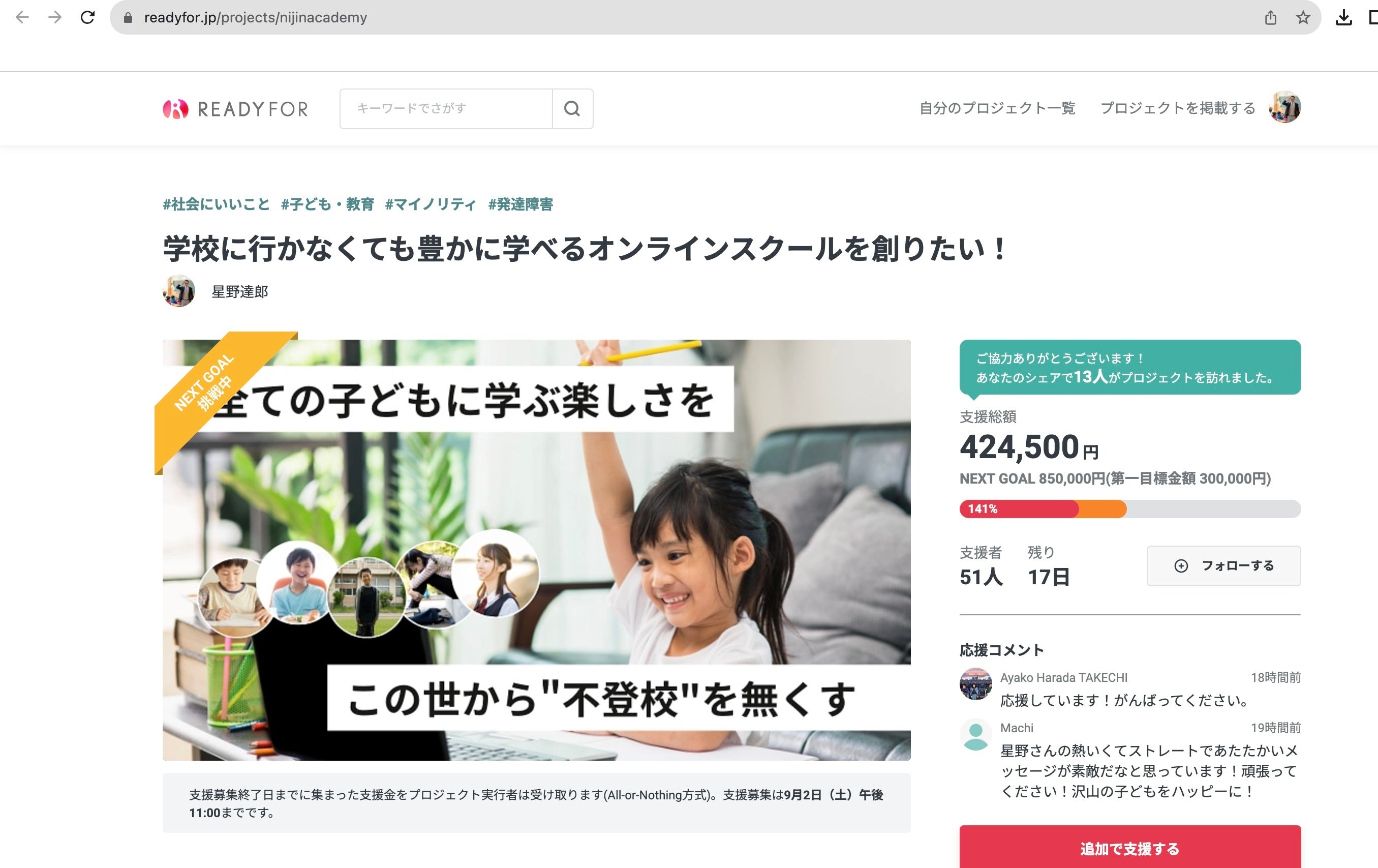今後もクラウドファンディング終了までは引き続き皆様のご支援、ご協力をお願いして参りますので、何卒よろしくお願いいたします。