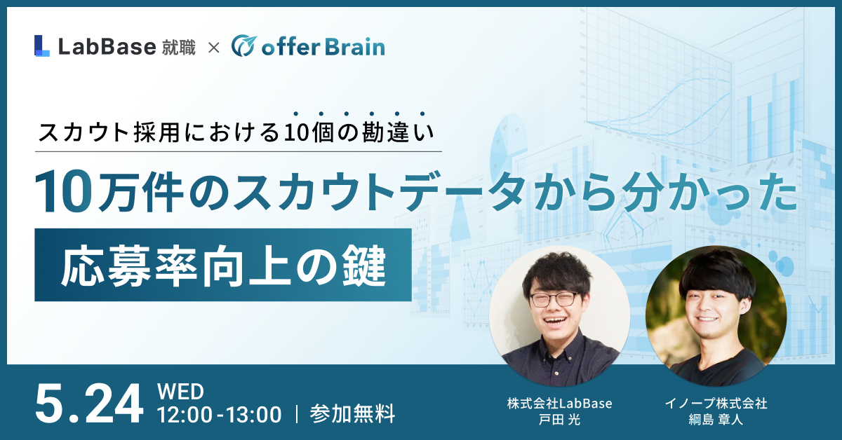 【スカウト採用で失敗したくないあなたへ】スカウト採用で応募数18倍に?!10万件のスカウトデータから分かった応募率向上の施策を公開するLabBase×Innoop共催セミナーを開催!