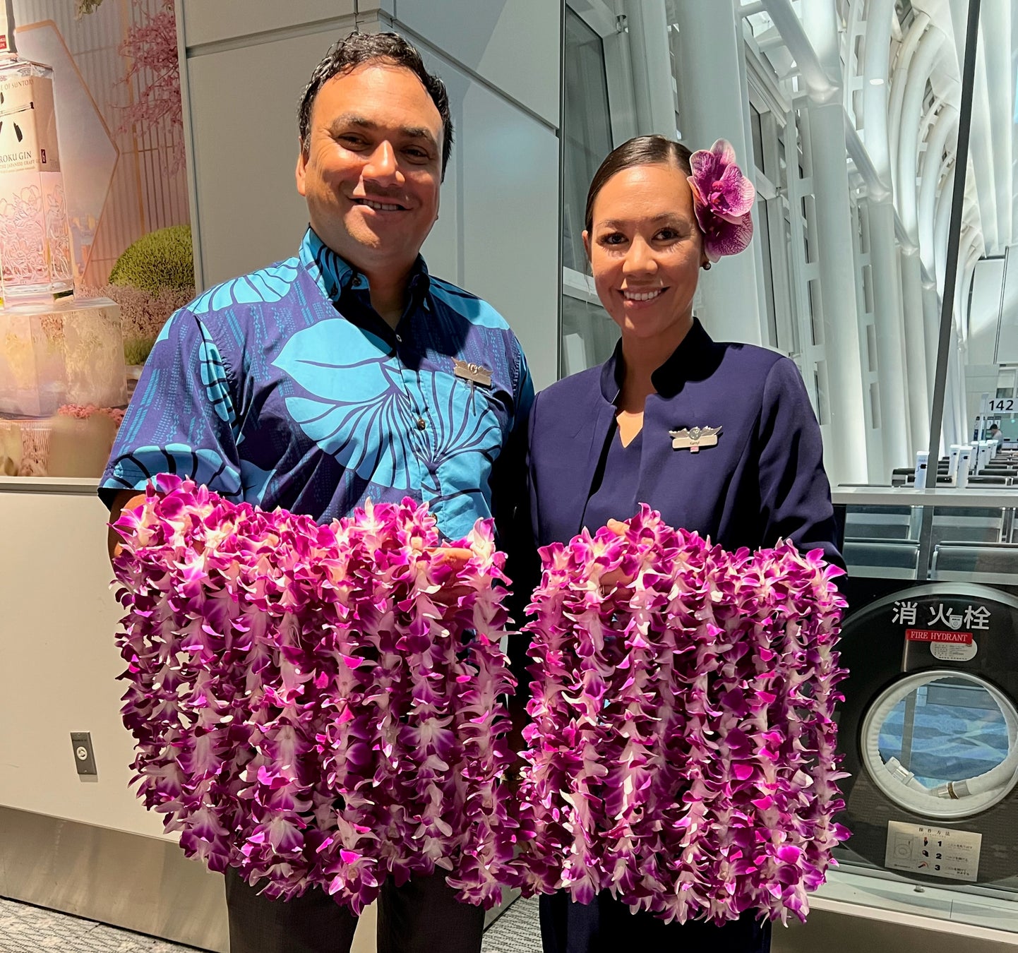 ハワイアン航空では、この度の発売を記念し、7月1日(月)羽田―ホノルル便(HA458)の出発搭乗ゲートで、サプライズギフトとしてフラワーレイと共に乗客全員にプレゼントしました。