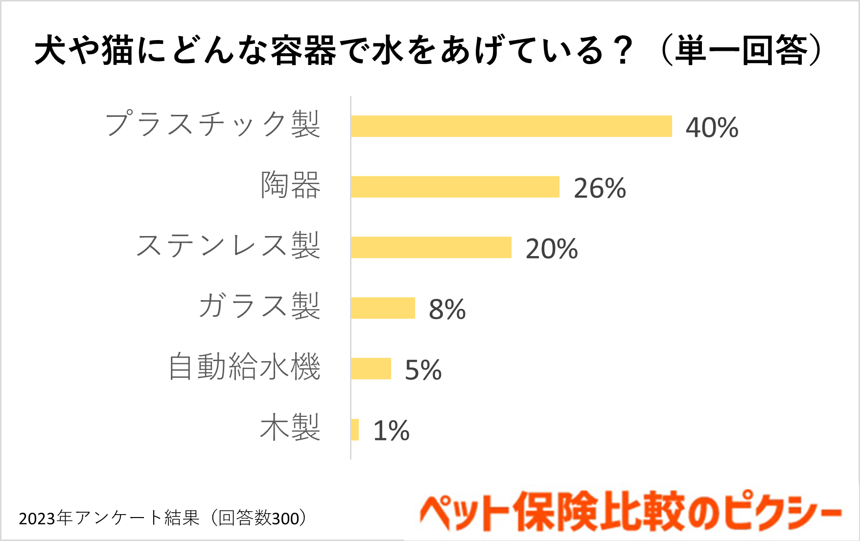 2位は「陶器(26%)」、3位は「ステンレス製(20%)」でした。ペットがかじってもキズが付きにくく、手入れがしやすい材質の容器が続きました。