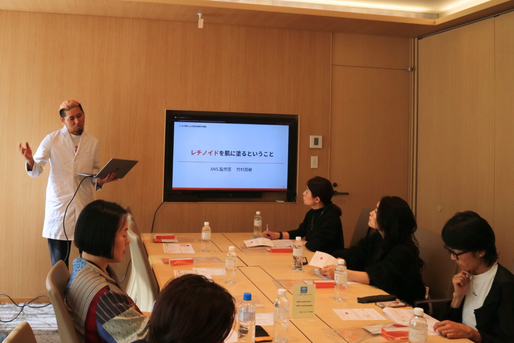 ANS.監修医である竹村昌敏医師による医学的解説とともに、新製品「リポレチノセラム®」を通じて、“効かせながら肌を守る”レチノイド療法の最前線を紹介しました。