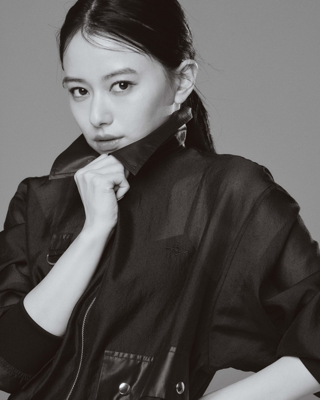 ブランドアンバサダーを務める、俳優山本舞香が「クールな装いと熱い内面」という