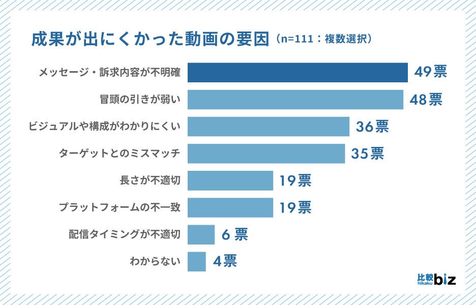 Q.成果が出にくかった動画の要因(n=111) ※複数選択可能