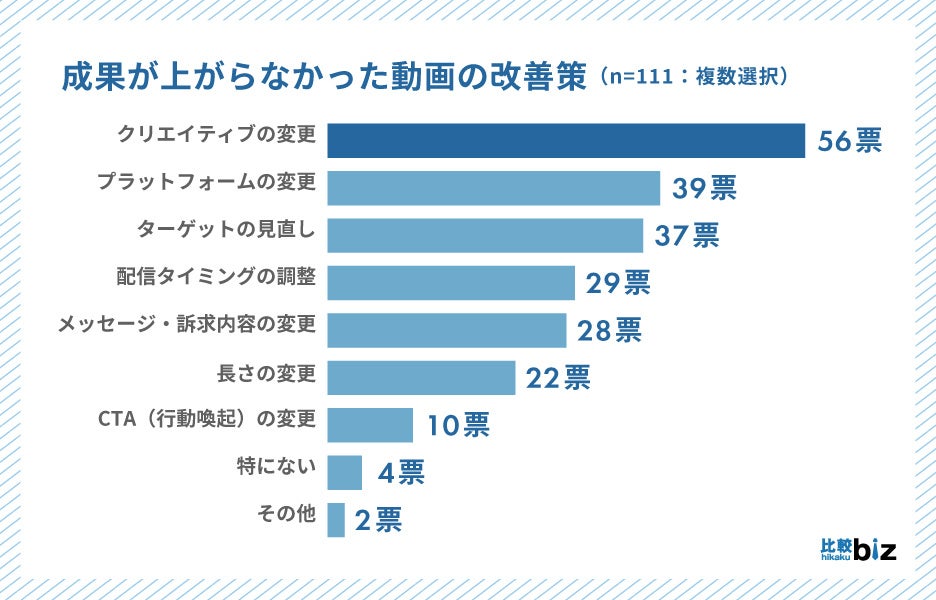 Q.成果が上がらなかった動画の改善策(n=111) ※複数選択可能