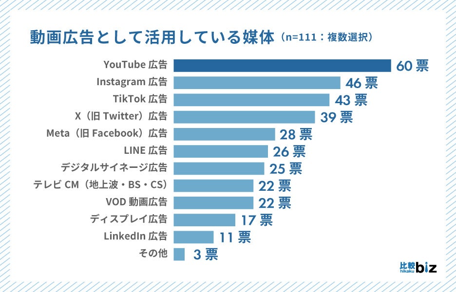 Q.動画広告として活用している媒体(n=111) ※複数選択可能