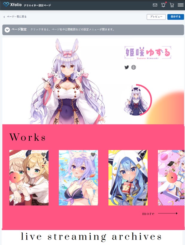 また、Xfolio内に姫咲ゆずるさんのポートフォリオページも公開となります。クリエイター向けのトピックを盛り込んだコンテンツも順次公開していく予定となりますので、是非ご覧ください。