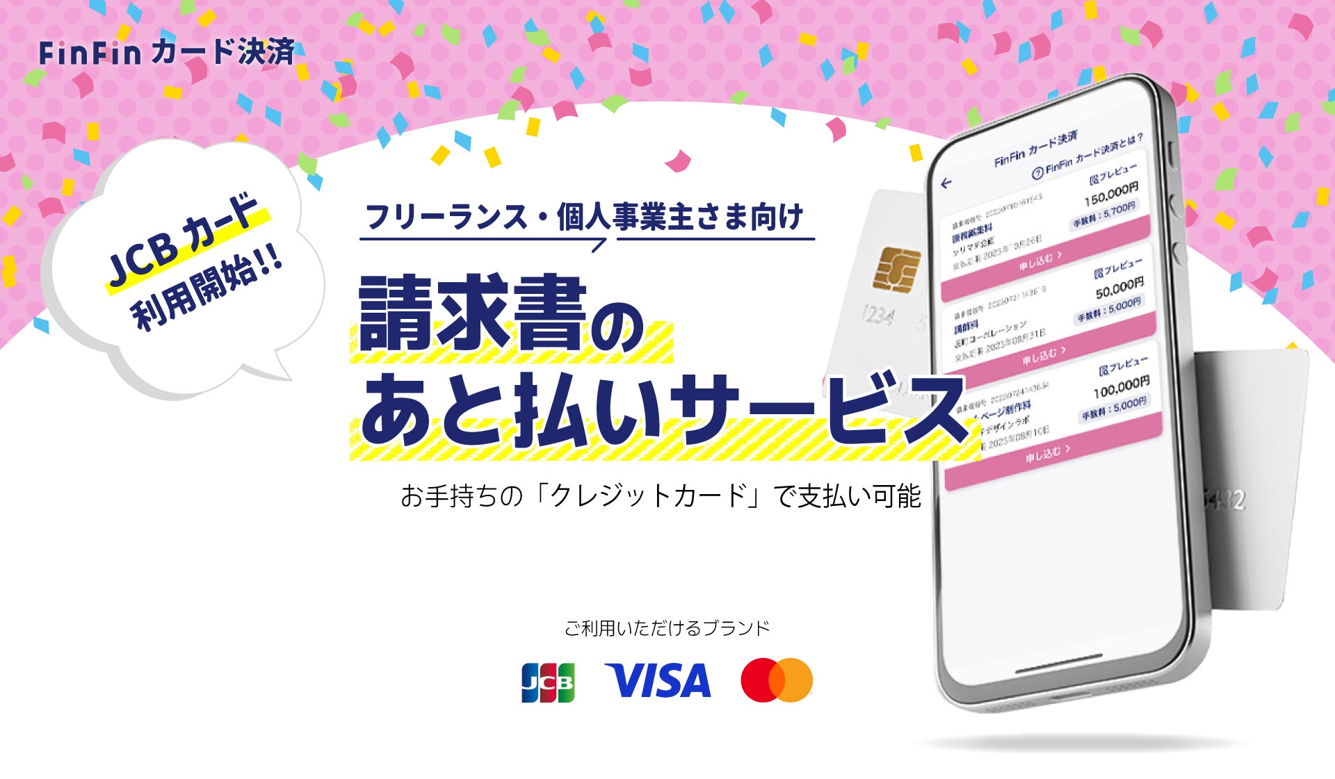 フリーランス・個人事業主の資金繰りを解決する請求書あと払いサービス「FinFinカード決済」が決済カードブランド「JCB」の取り扱い開始でさらに便利に!