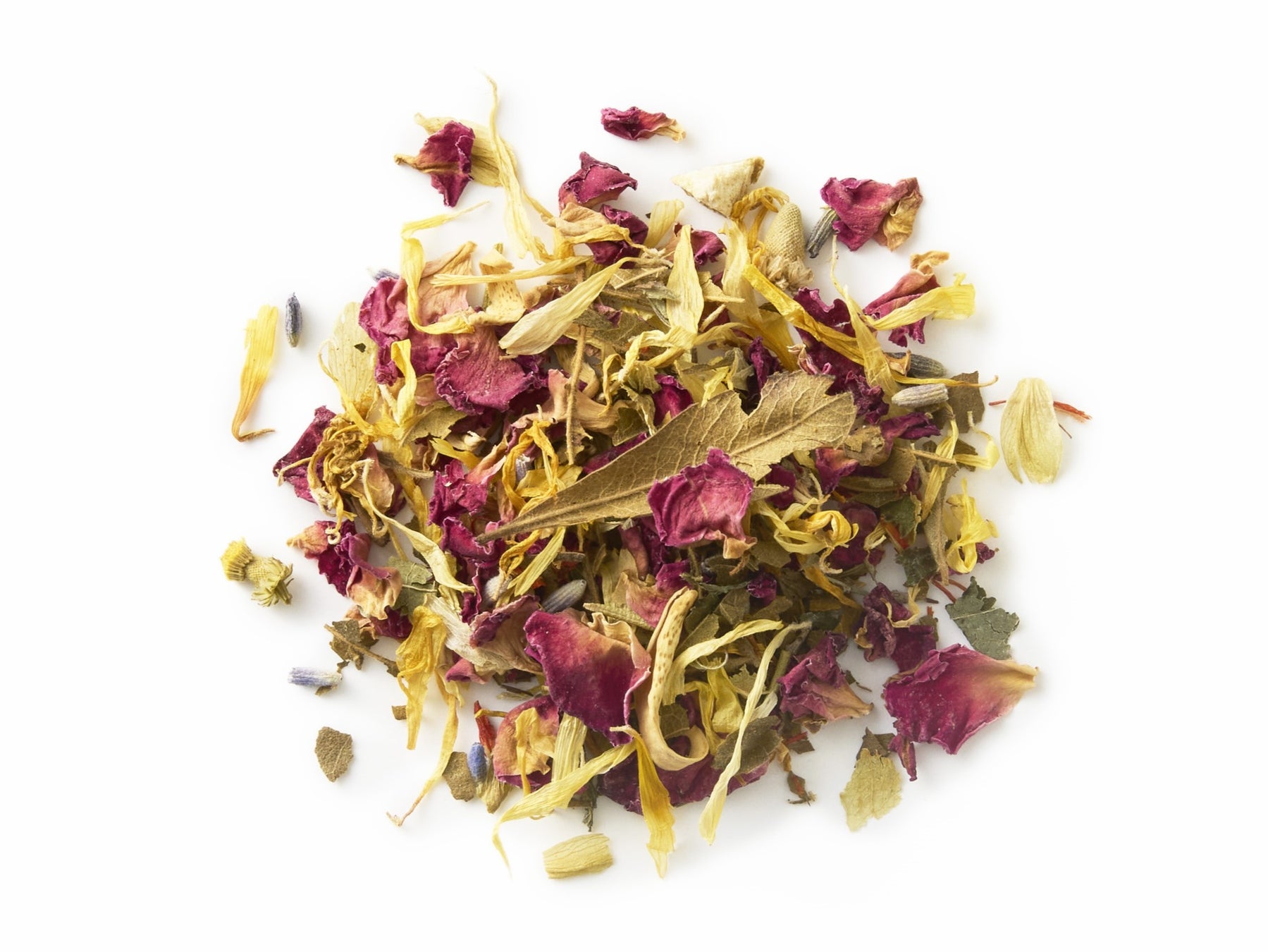 ヤチヤナギ、ローズ、マリーゴールド、オレンジフラワー、カモミール、レモンバーム、ローズマリー、アンゼリカ、オートミール、オレンジピール、サフラワー、パッションフラワー、バレリアン、ホップ、ラズベリーリーフ、ラベンダー、リンデン、レッドクローバー、レディースマントル、コーンフラワー