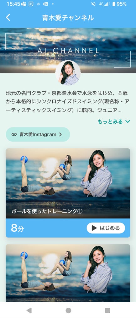 1. アーティスティックスイミング元日本代表の青木愛さんによるAIエクササイズを追加