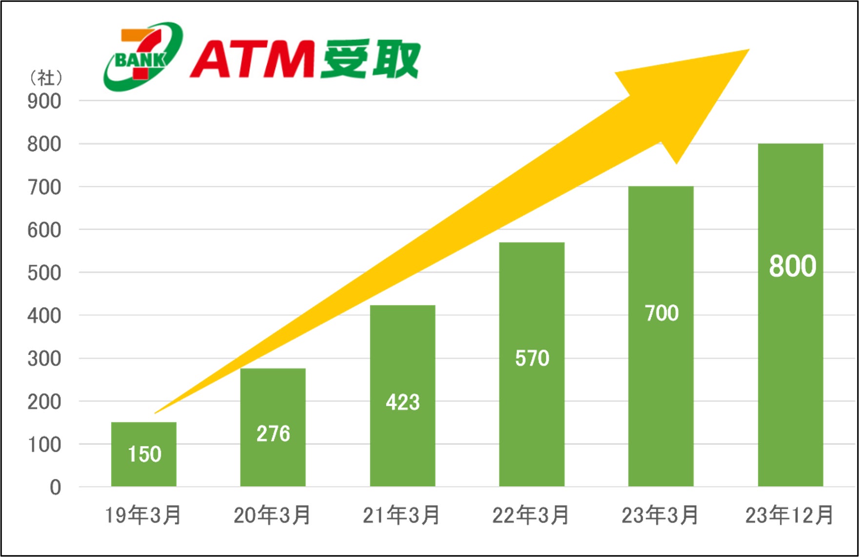 セブン銀行子会社セブン・ペイメントサービスが提供する送金サービス「ATM受取」の契約社数が800社を突破