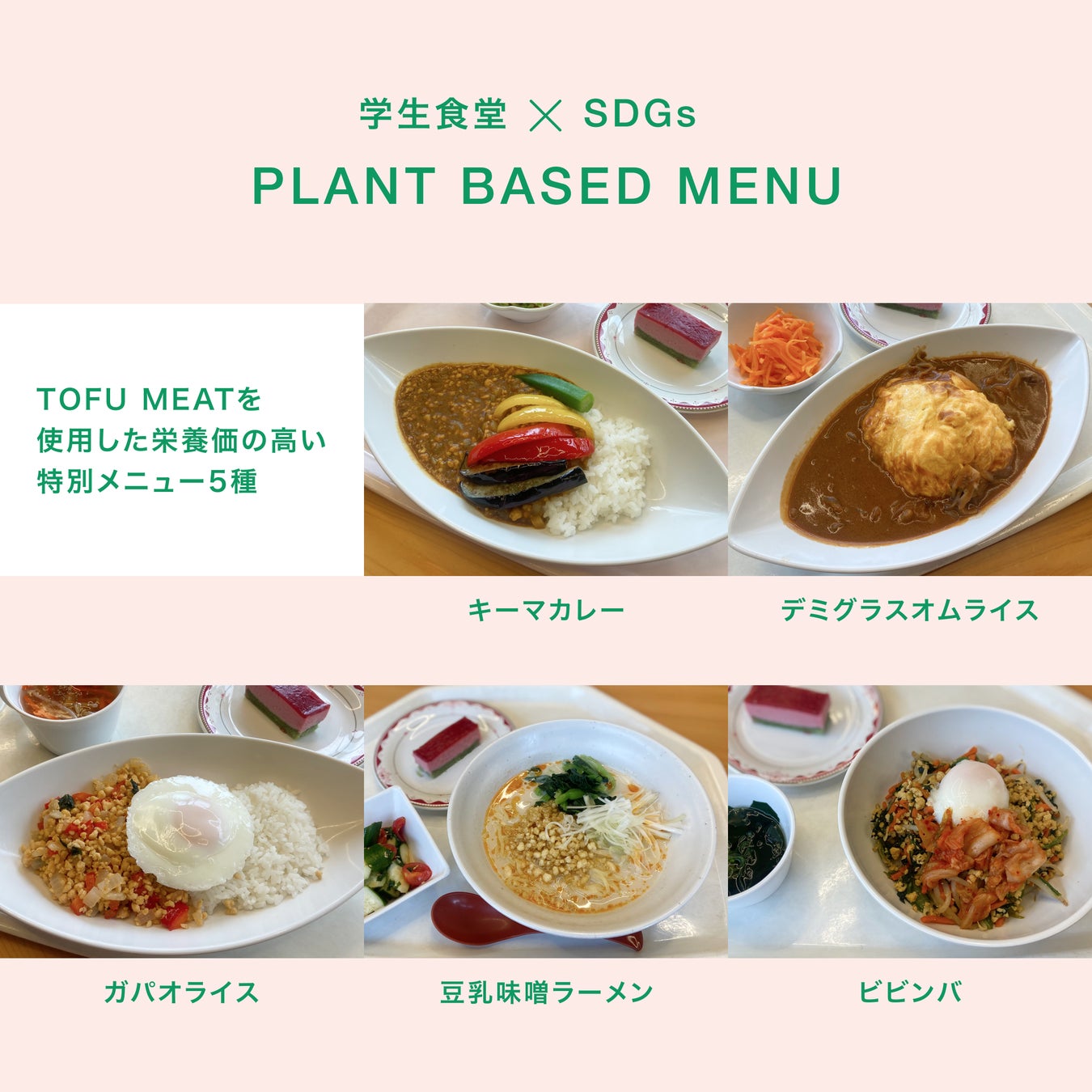 本企画は、学生や教職員にSDGsやプラントベースフードについての理解を深めることを目的として実施が決定いたしました。食物栄養学科の学生がTOFU MEATを活用し、栄養価を考慮した5種類のレシピを考案しました。学生食堂にて、10月2日から11月10日までの期間、週替わりでフェアを開催いたします。