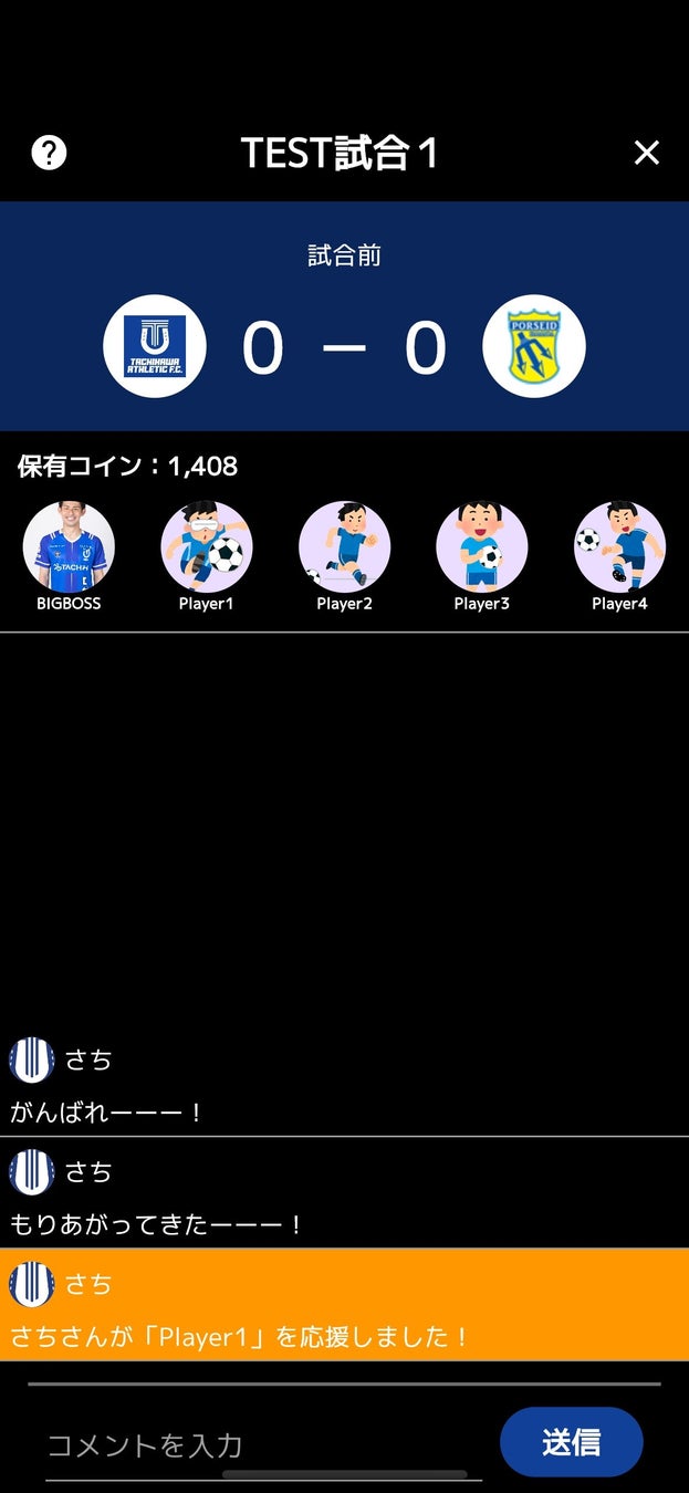 投げ銭機能付きオープンチャットでは、選手の応援はもちろん、ファンの人との交流もできます!