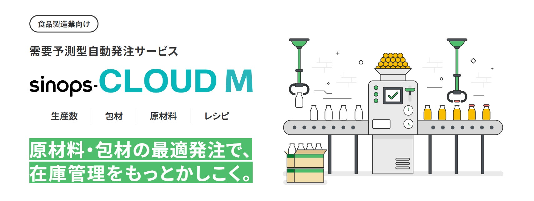 株式会社シノプス(本社:大阪府豊中市、代表取締役:南谷 洋志、以下「シノプス」)は、製造工程における食品の原材料や包装資材の発注、在庫のムダにフォーカスした食品製造業向け需要予測型自動発注サービス「sinops-CLOUD M」の提供を開始しました。