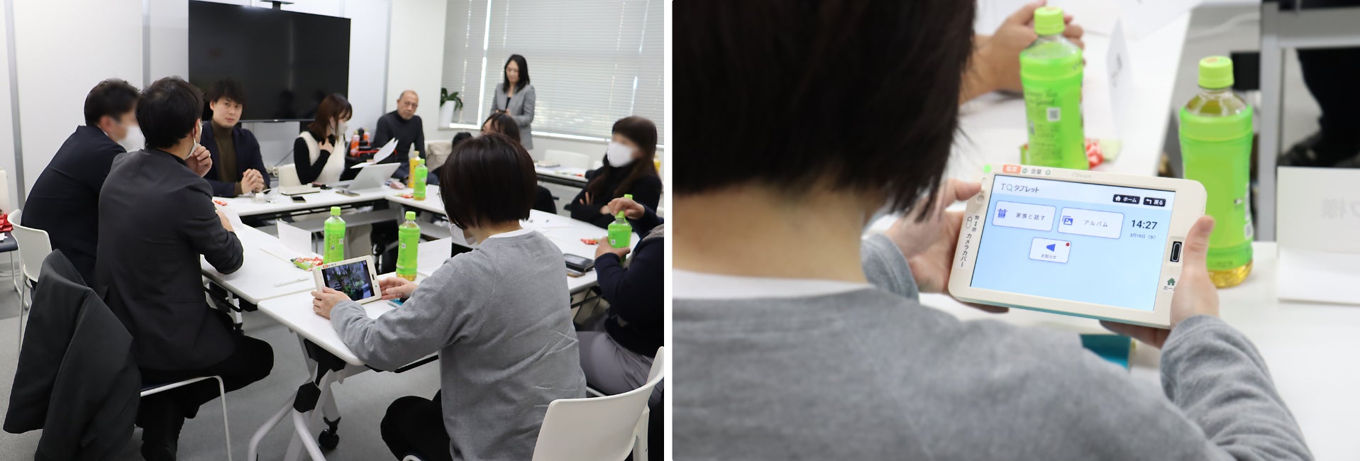 操作の簡便性、コミュニケーションツールとしての有益性を評価。介護従事者が補助しながらスマホを使うシーンの代替ツールに(特養勤務 30代 男性)