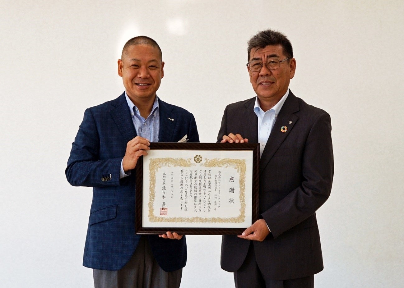 株式会社サンセイランディック(本社:東京都千代田区、代表取締役:松﨑 隆司)は、このたび企業版ふるさと納税として北海道中川郡本別町に寄付し、感謝状を賜りましたのでご報告いたします。