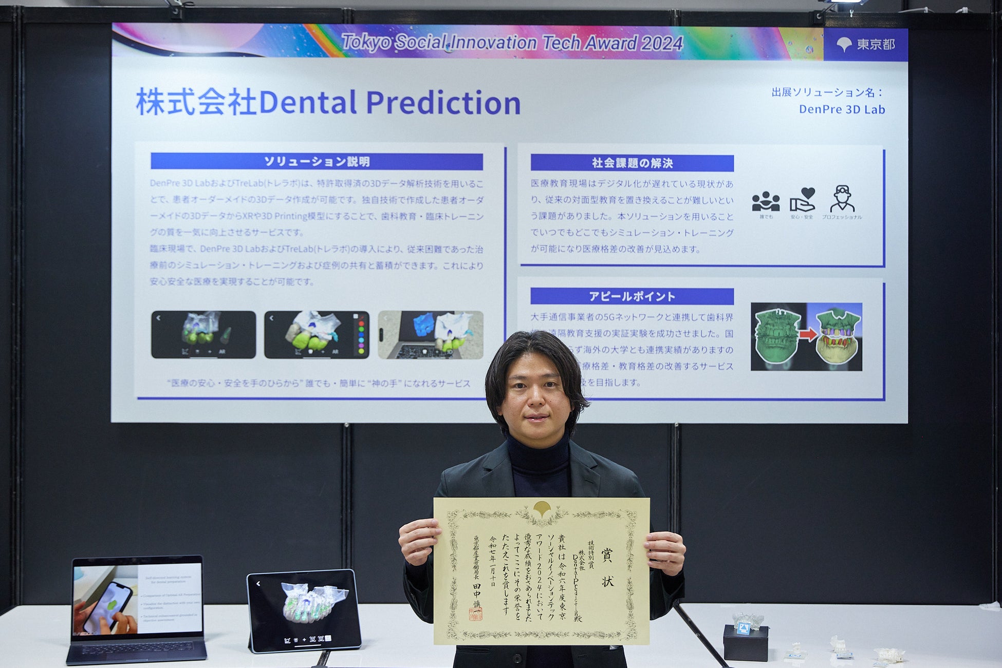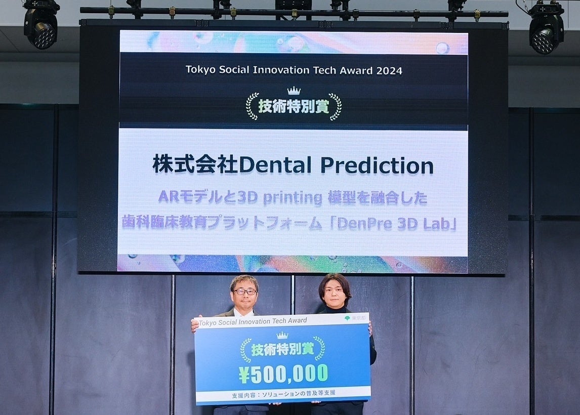 株式会社Dental Prediction(所在地:東京都港区、代表取締役:宇野澤元春、以下「Dental Prediction」)が開発・提供している歯科3Dデータ制作サービス「DenPre 3D Lab」が、東京都主催の「Tokyo Social Innovation Tech Award 2024」にて、技術特別賞を受賞しました。