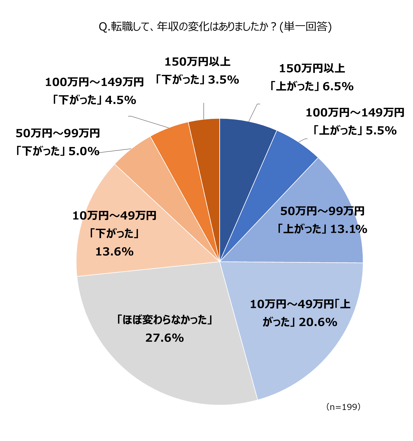 転職経験者の25.1%が「転職して年収50万円以上アップした」と回答
