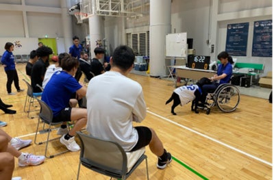 FE名古屋は、2022-23シーズンから日本介助犬協会との連携を開始し、介助犬(PR犬)のチームスタッフ入団や、ホームゲームでの啓発活動などを行ってきました。