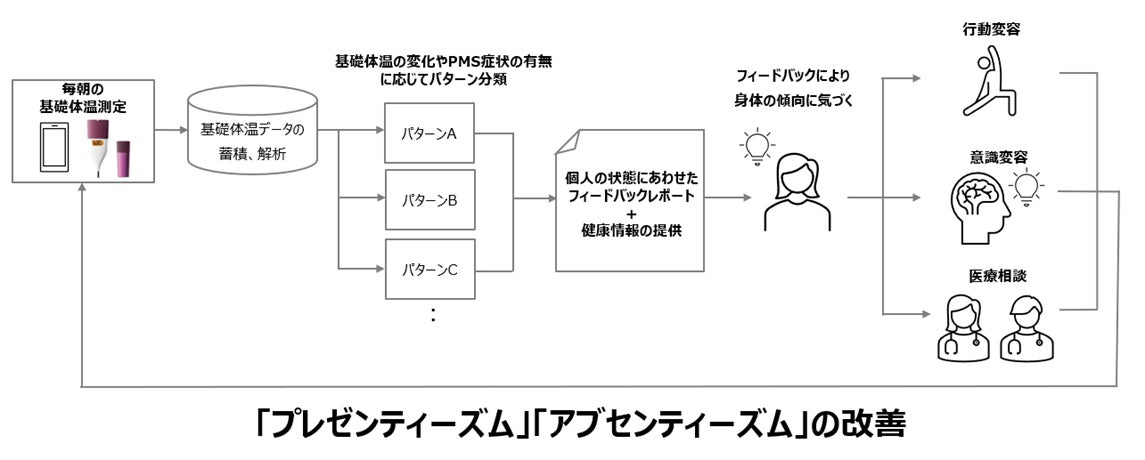 今回、新たに3社のノウハウを結集し、こうした女性の健康課題の解決を強力に推進していきます。女性特有のカラダのリズムを可視化する基礎体温の測定、オンラインによる医師への健康相談、養生思想に基づく生活および衣生活の提案を通じて、働く女性の行動変容や自身のパフォーマンスの変化を検証します。