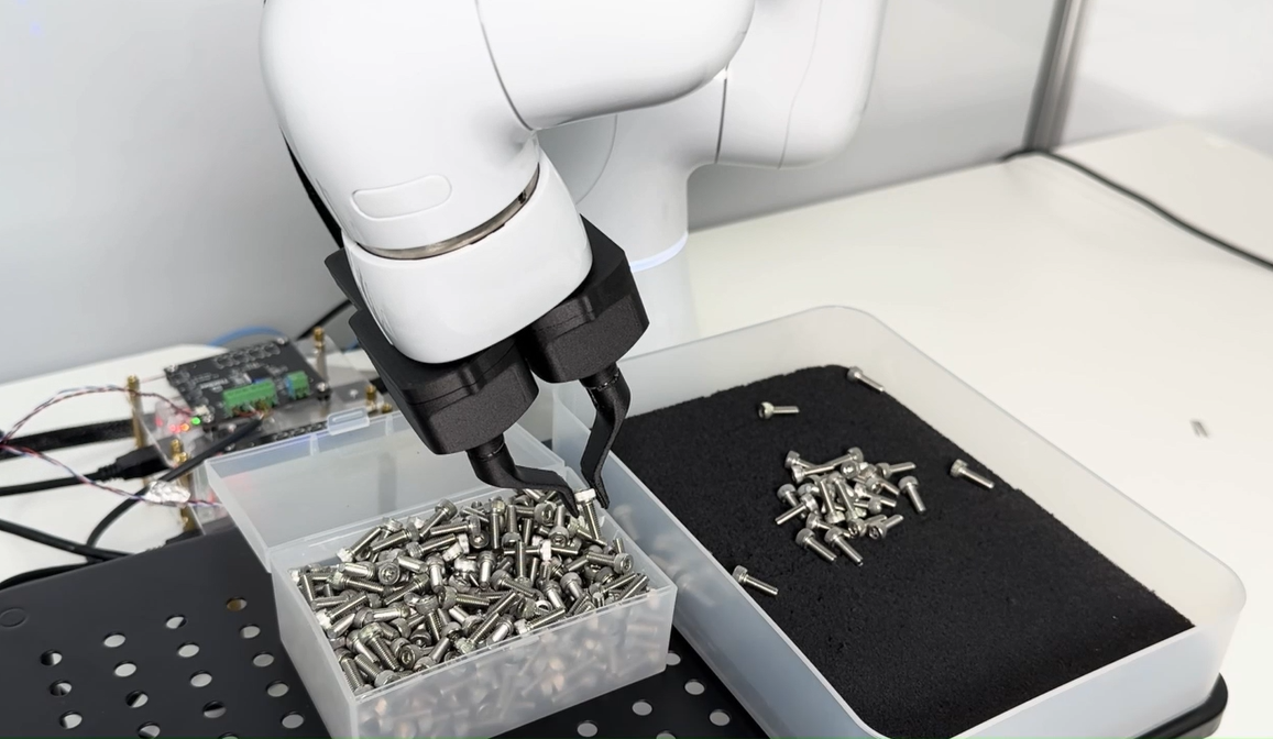 ・“指先”によって「まさぐる」ことで、ばら積み部品のピッキングをカメラレスで実現