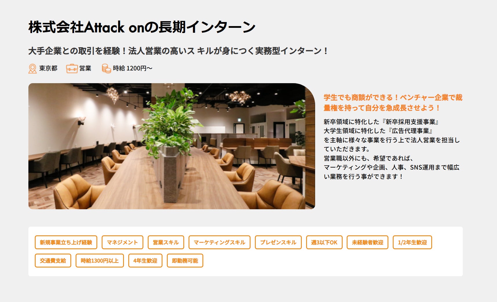 株式会社Attack on、ココシロインターンで営業職の長期インターン求人を掲載開始