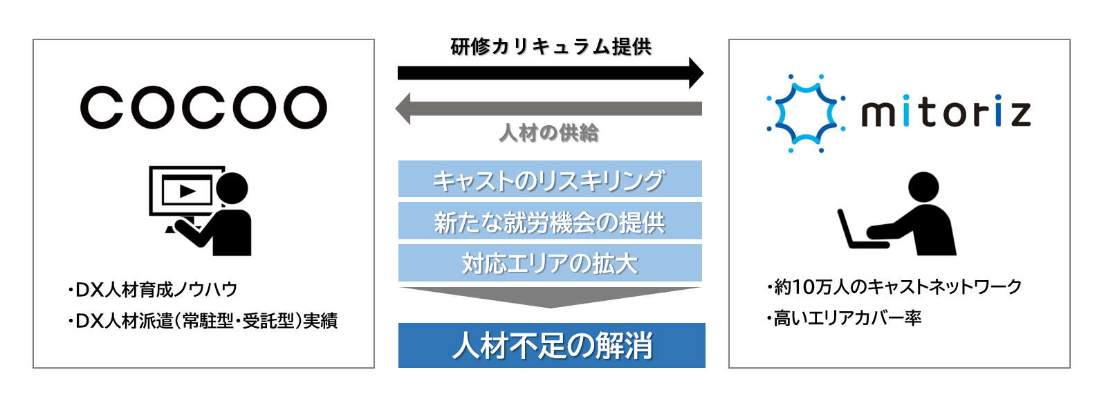 mitorizと人財×デジタル事業のコクーがアライアンス契約を締結 PCスキル習得に前向きな10万人のキャスト網でDX人材不足の解消に挑む