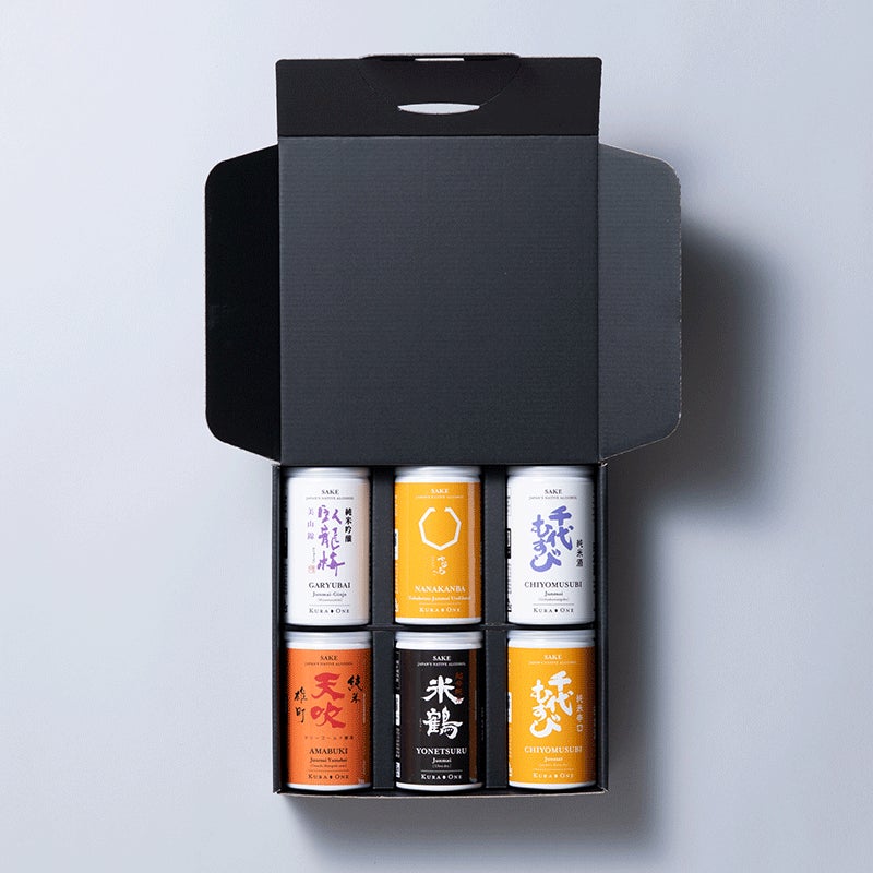 日本酒の楽しみ方・驚きの体験をストーリーとして言語化し、それを体感できる日本酒を、国内外で受賞歴のある酒蔵が醸造する市場流通商品から厳選し、KURA ONEコレクションとして商品化しています。軽量化・少量化を実現した180mLのアルミ缶は、配送料を抑えることができ、まだ日本酒に馴染みのない方にも、気軽に少量から銘酒を試していただけます。
