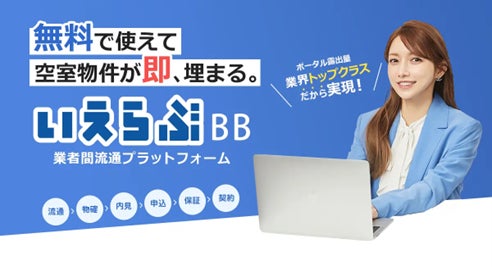 「いえらぶBB」は賃貸管理会社と賃貸仲介会社をつなぐ無料の業者間流通プラットフォームです。賃貸仲介会社・賃貸管理会社それぞれの基幹システムとの連携により、物件流通から内見予約・申込み、保証審査から契約までを一気通貫でオンライン化できます。システム連携により、ワンクリックでの物件取込み・サイト掲載、リアルタイムでの物件確認が可能で業務効率化に貢献します。